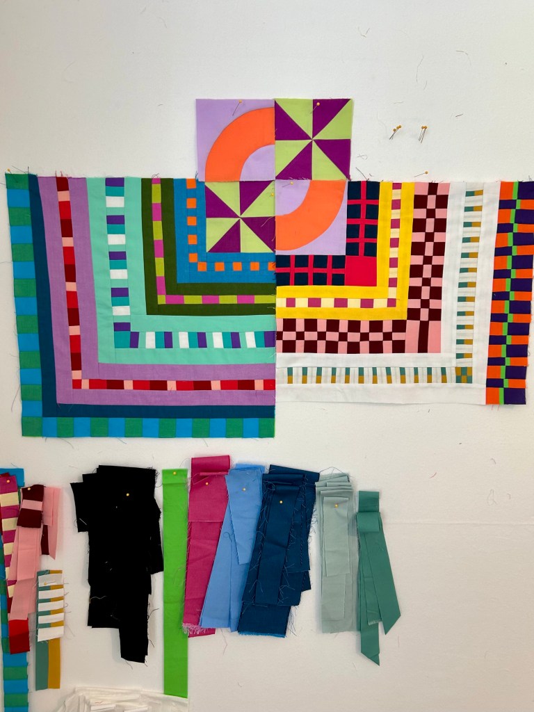AND, I’m ironing the saved fabrics from season 4 of The Color Collective where guest designer Annabelle Wrigley gave us her “Prickly Pear” quilt. The fabrics are from her own collection of solids, Ruby + Bee.
