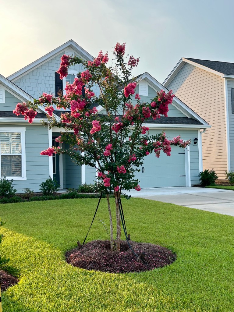 Eventually the Crepe Myrtle will provide more shade, but not for a few years. I’m going to replant with the “Drift” landscape roses like the little “Popcorn” rose I planted earlier in the summer. It is thriving in the hot sun in the back of the house. I’d like to get more of the “Popcorn” version, and Hidden Pond Nursery is going to try to order 5 of them for me. Otherwise, maybe the “Apricot” Drift rose that is known for its fragrance. Hidden Pond does carry the drift roses, so eventually I’ll get some that will work for me.