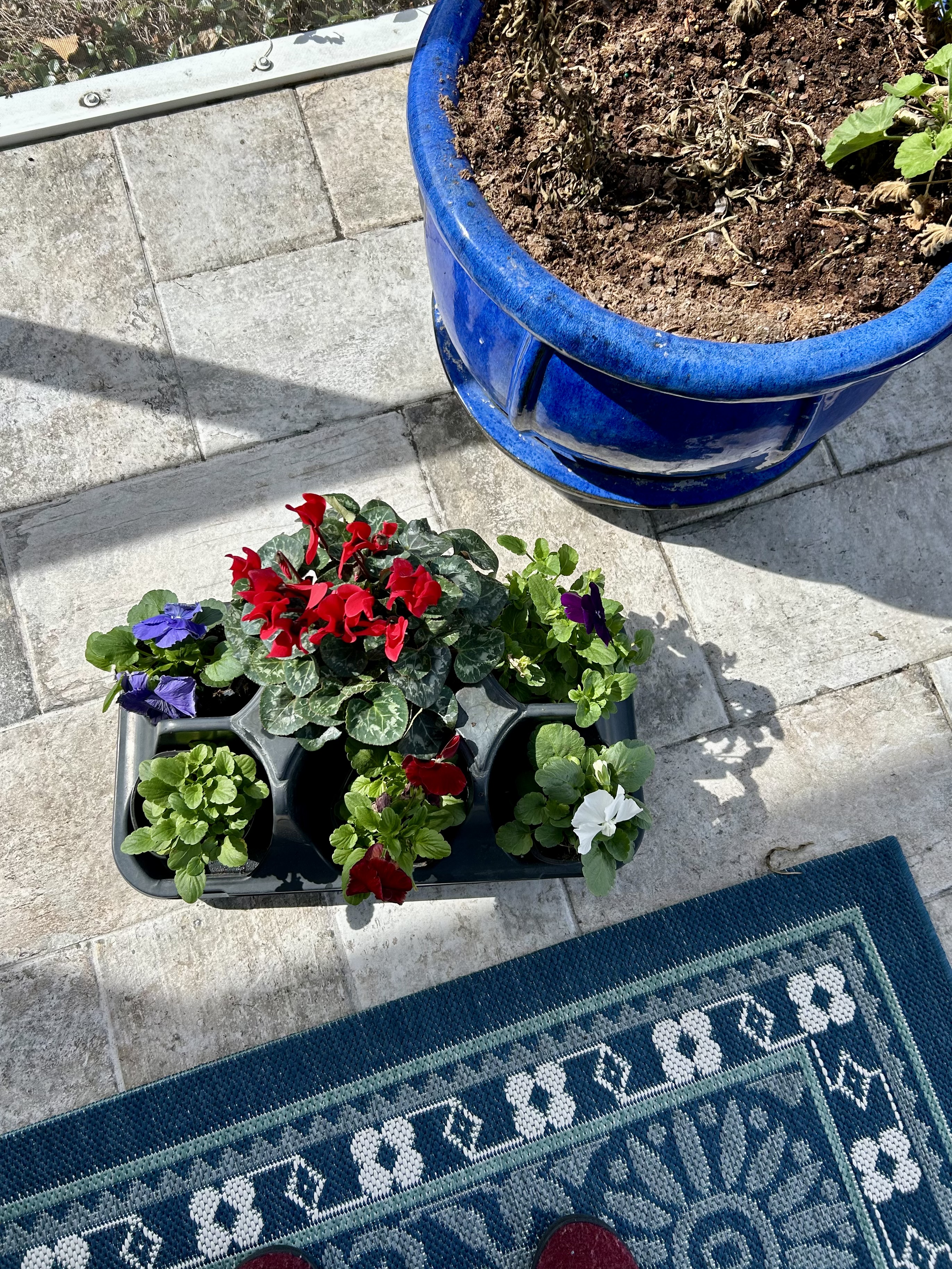 Pansies and a red cyclamen.