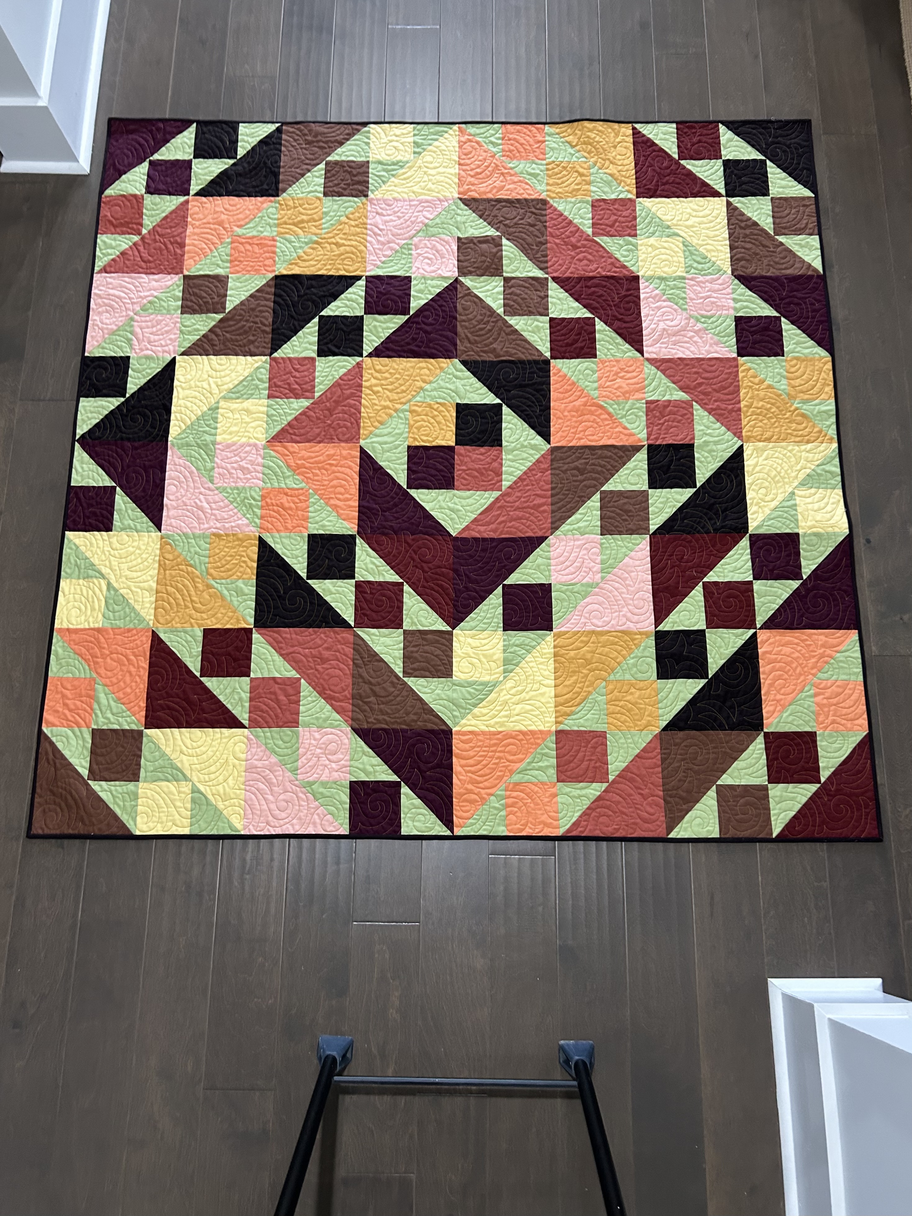 The first quilt is “Fall’s Splendor,” and it is done and bound.