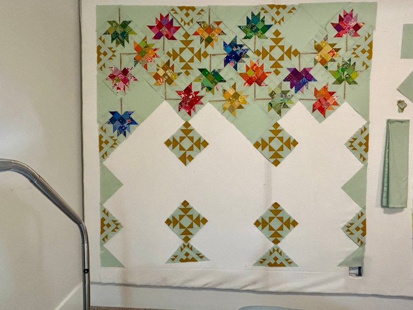 The block on the right is going into that improv quilt growing on the design wall. It will be such a nice fit with those blocks.