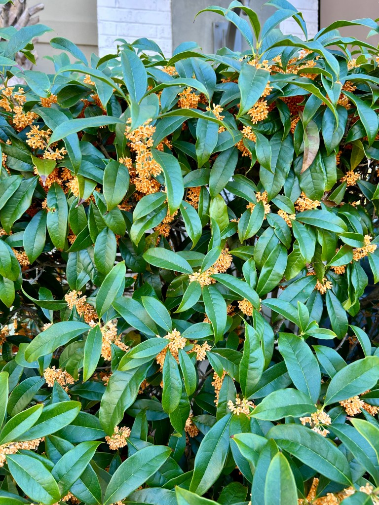 I saw my first Tea Olive shrub in bloom. It’s an orange one. They also come in white. This plant comes to us from Asia.