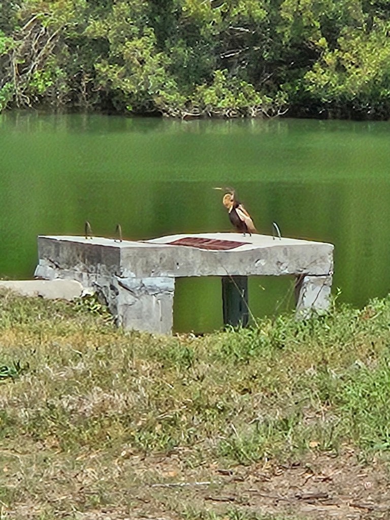 She’s (yes, she is female) an Anhinga, a member of the Darter family of birds as she spears her fish prey with her bill, detaches the fish by throwing it in the air, and then swallows it whole.