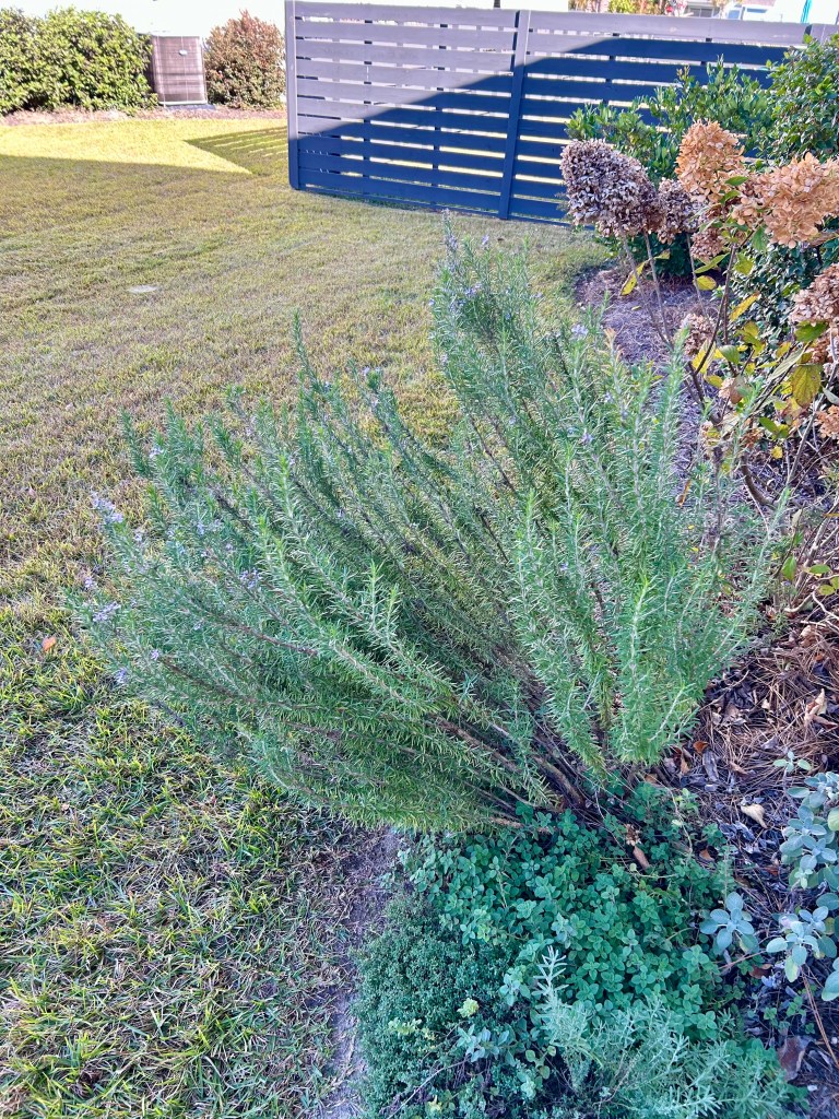 Here’s what rosemary does in this climate: it makes bushes. Right now it is blooming, and the bees and hummingbirds have found it. But I think I’ll cut it back some after a hard freeze.