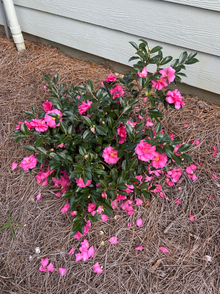 This low-growing camellia blooms in the fall and early winter. This winter is her second winter, and she is…happy.