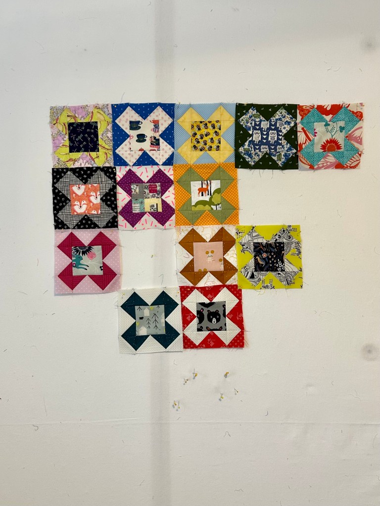 I knew I’d like to use this trial block to add to my growing improv quilt blocks. Here’s what I have now. You will find “Crosswalk” and “Garnish” blocks here as well.