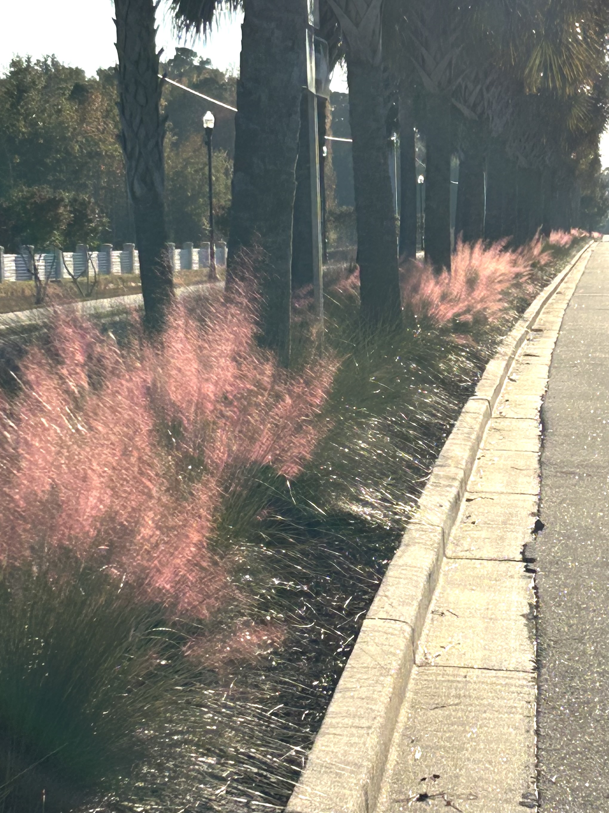 The Muhly Grass here has been blooming for about 2 months. I love it when the rising or setting sun lights it up.