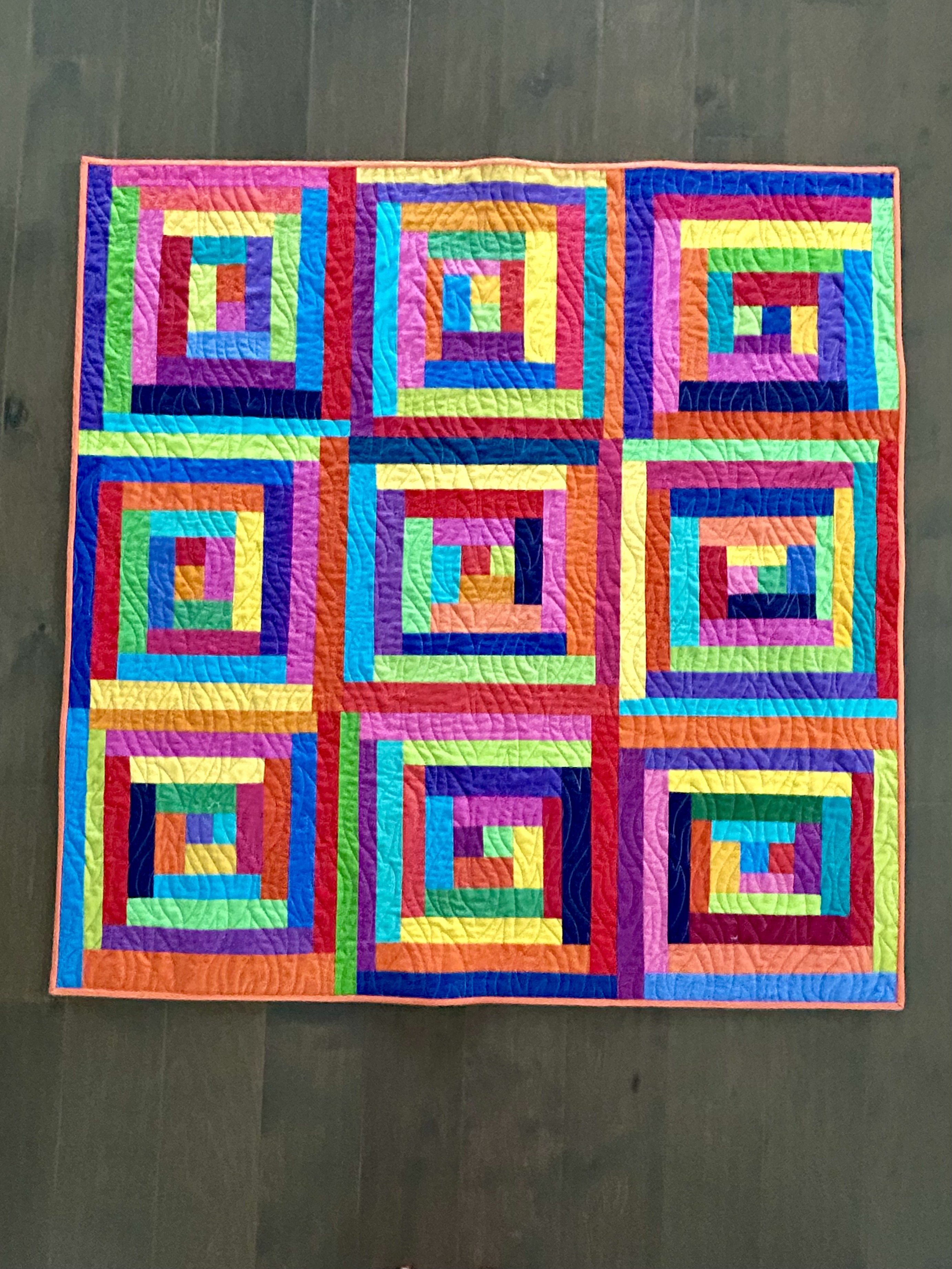 This little scrappy log cabin came off the design wall and will get its binding installed today. It is 42-inches square.