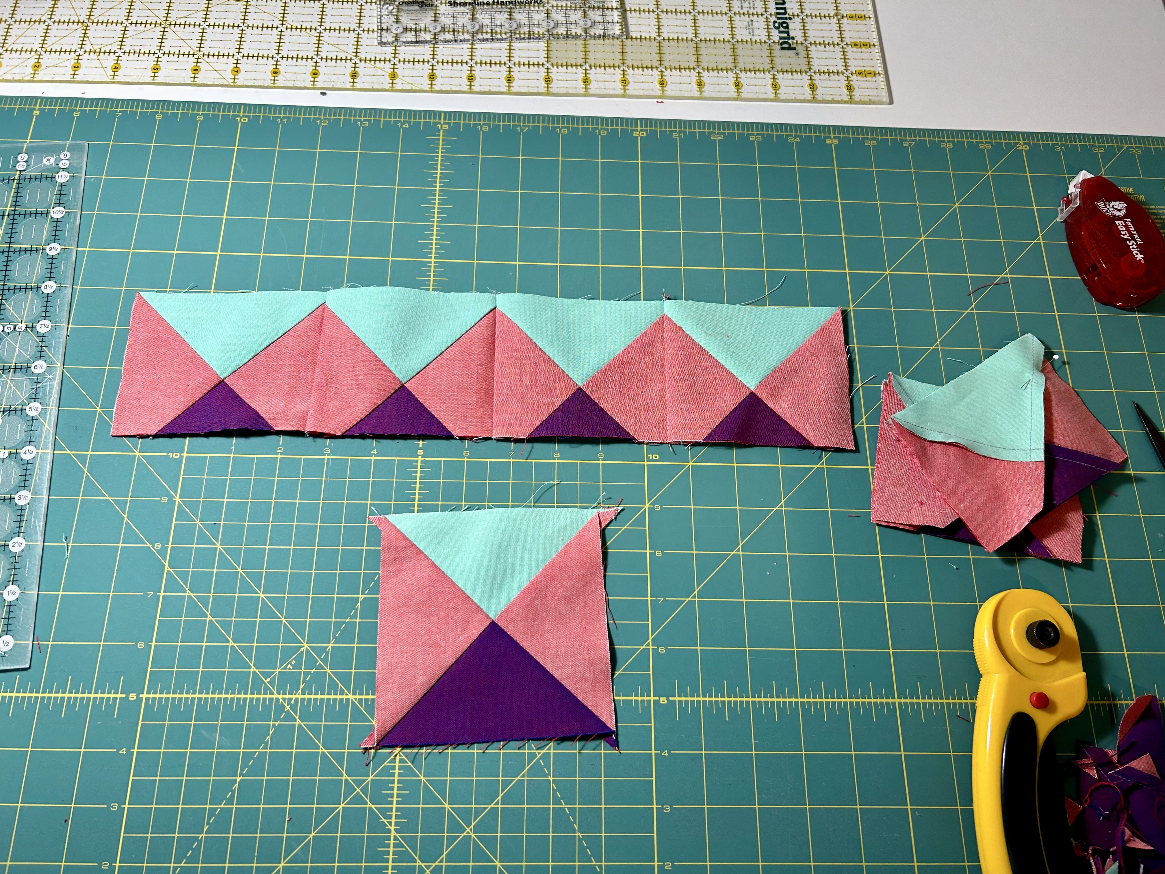 Here are a few finished blocks in a wide row that will use two rows to make its design. I am testing to see if my blocks are perfect as the row has to measure exactly to all the other rows.