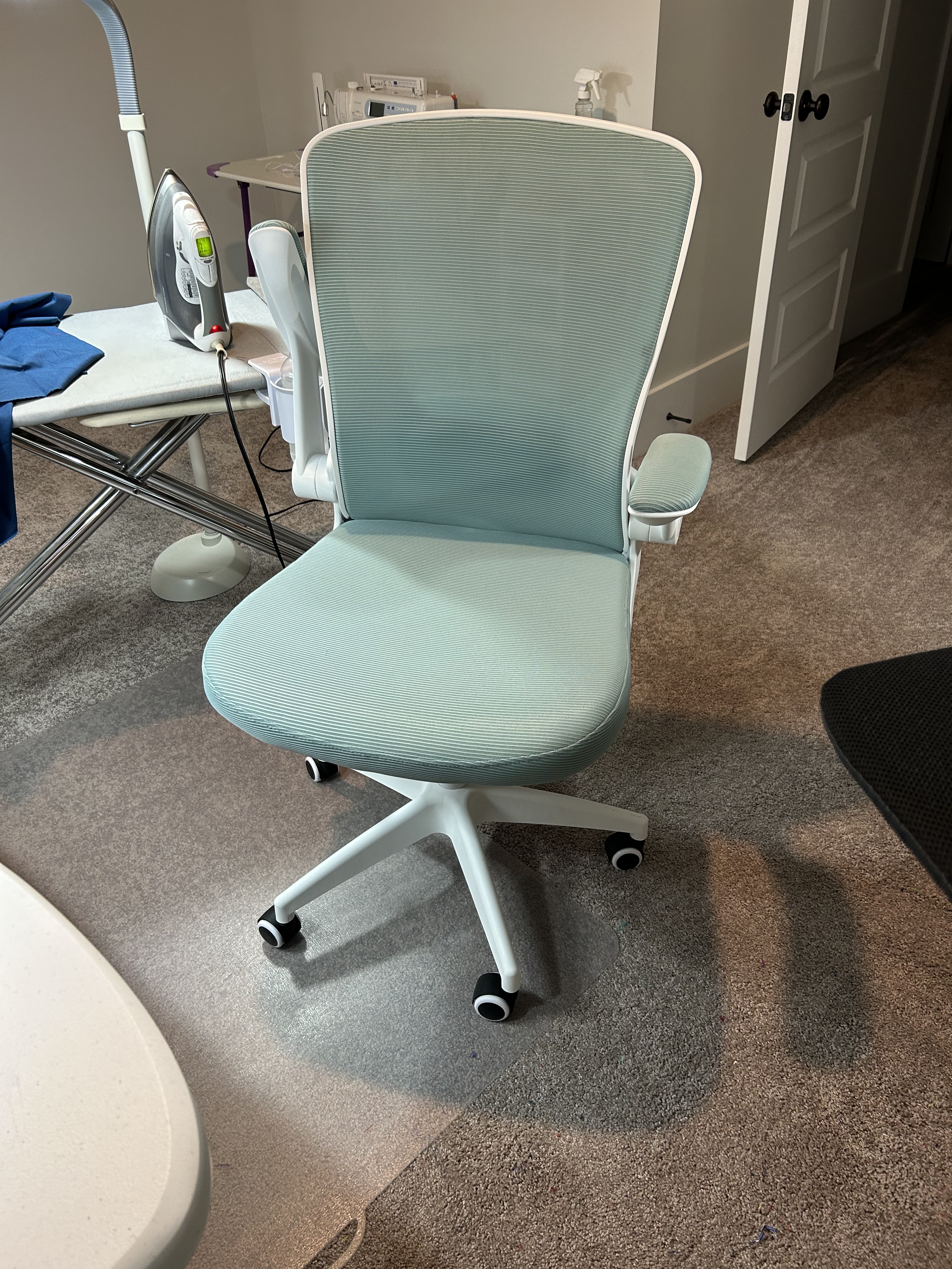 And now I’m very happy! The chair is very comfortable, the arms can be slid up and out of the way, there is lumbar support for a lower back, AND I had fun putting the chair together.