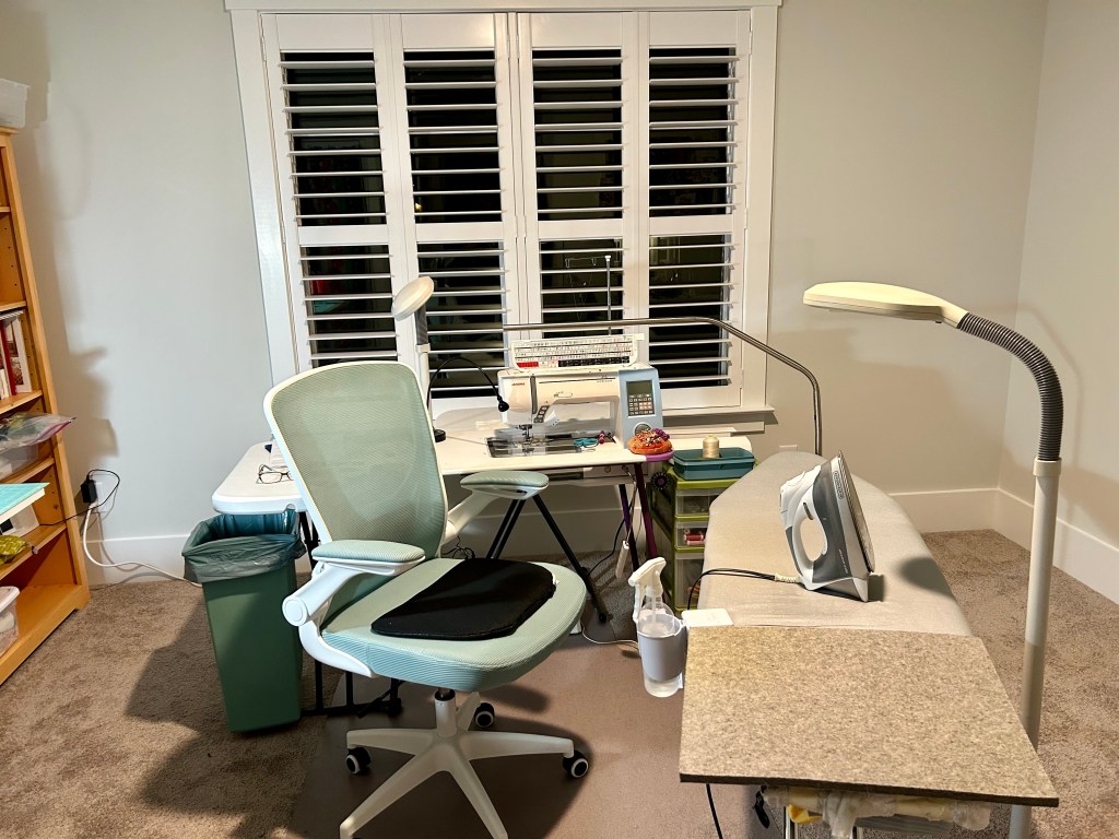 I ordered a new chair from Amazon as I could not find one locally for a price I would consider. Sewing chairs at JoAnne’s were $300 plus!!! And office chairs at Staples were also expensive and so…”officey.” This chair was $138 with tax!!!! Lovely. But it had to be put together. So I spent a quite lovely hour doing that task while sitting on the upstairs rug under a good light.