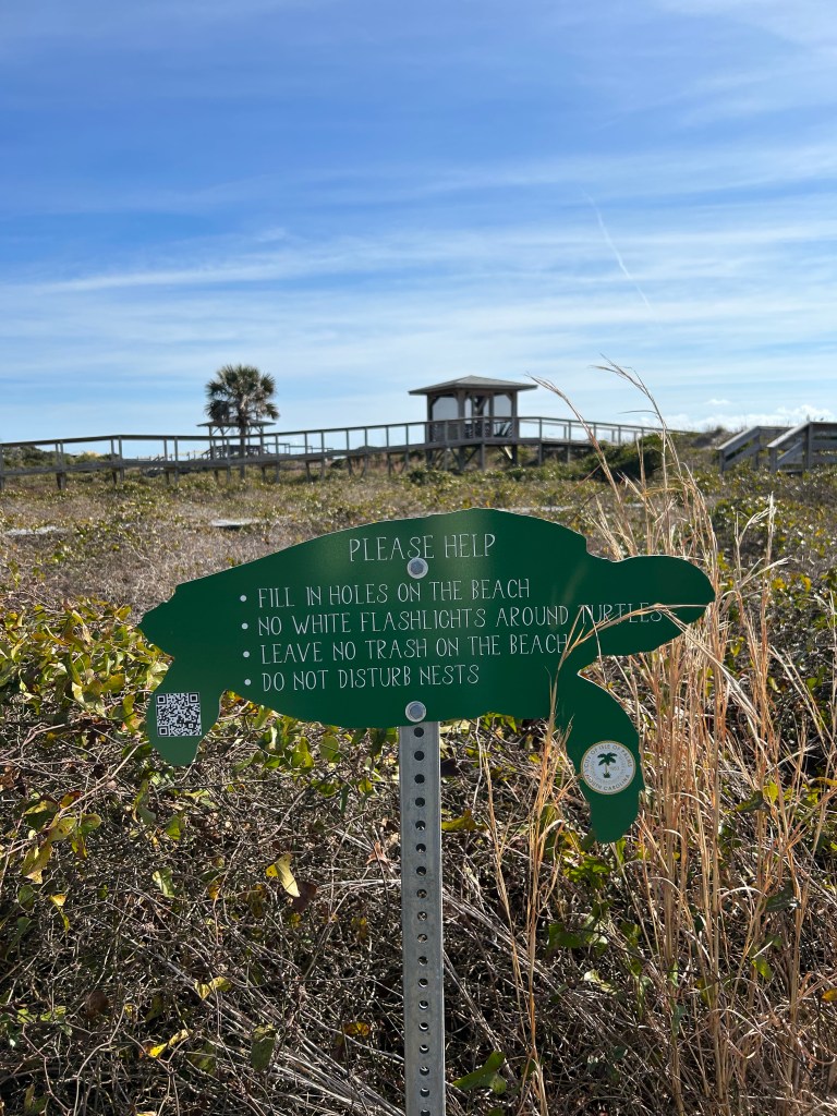 Turtles hatch regularly on this beach. The mother turtles form nests from May through mid-August. Each nest can have about 120 eggs. The eggs incubate for 55 to 60 days and babies can emerge from July through October. Signs go up in early spring that seek to protect the beach nests.