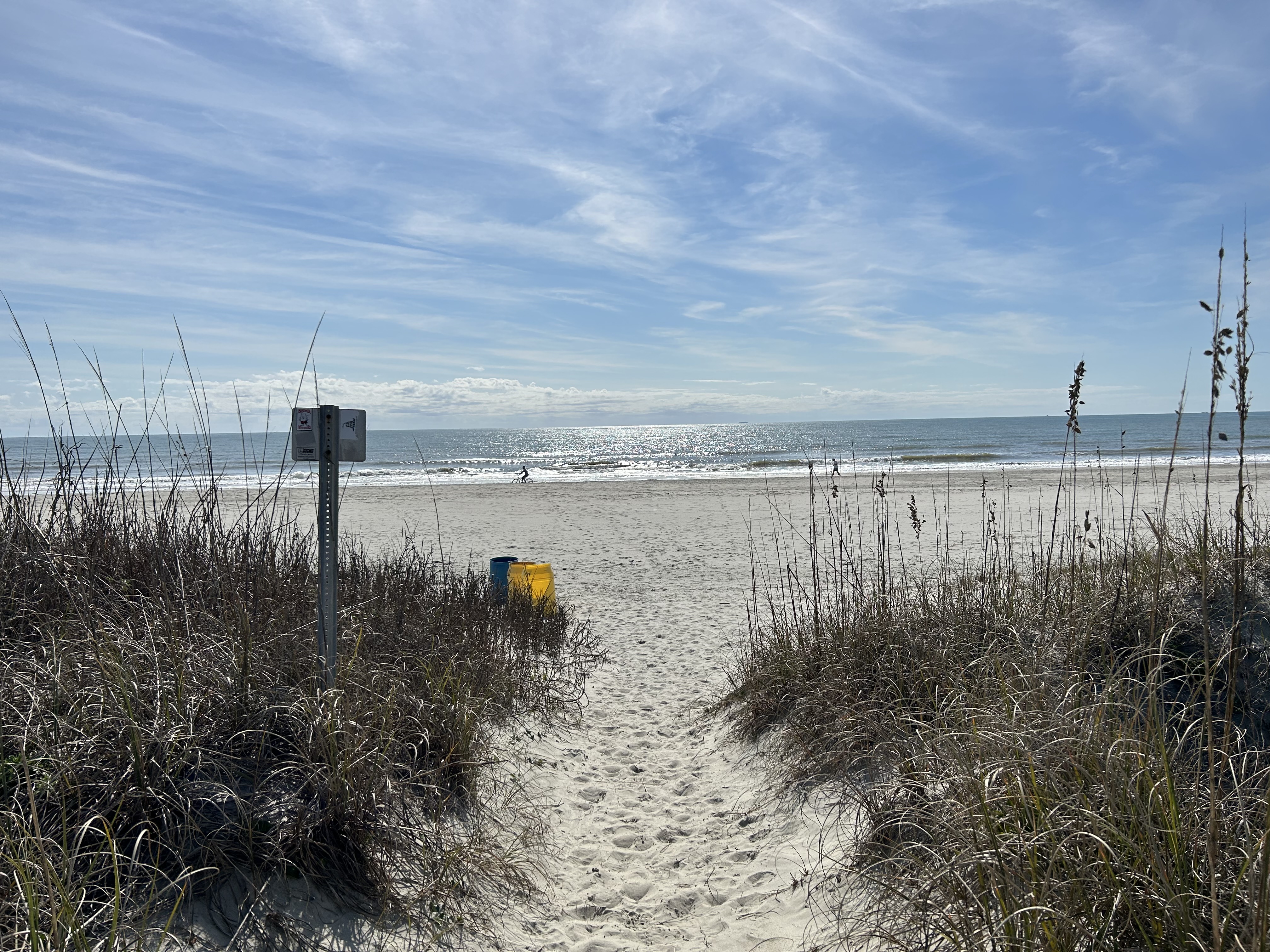 Corinne and I walked to the beach from the house. The Isle of Palms beach has numerous officially sanctioned pathways between houses to get to the beach. Here’s one: