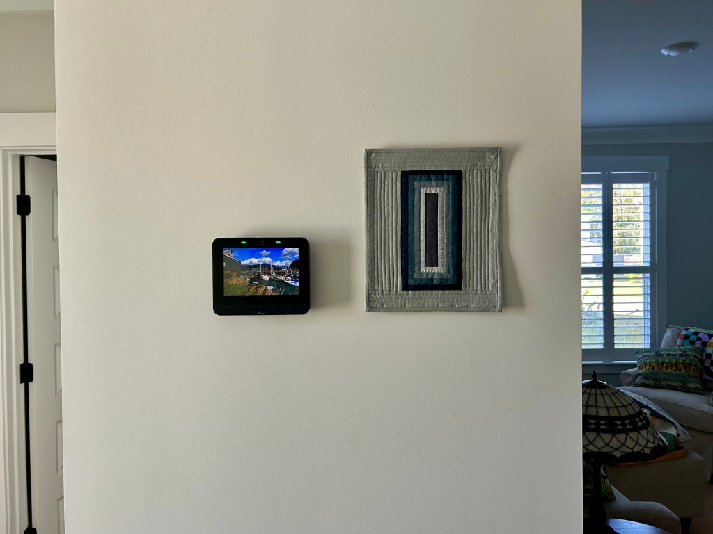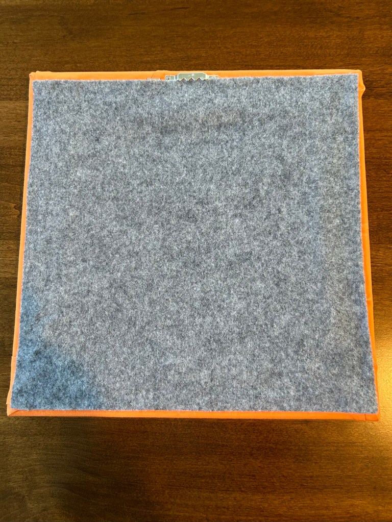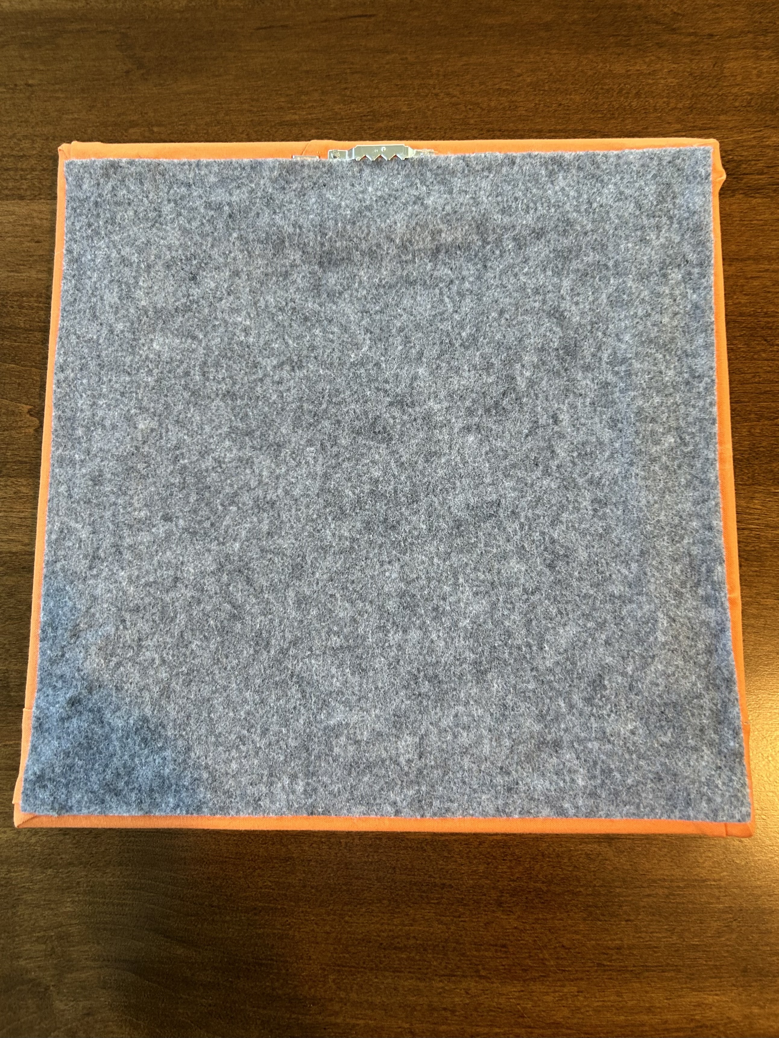 So, what emerged for me was a really fun–and at times frustrating–learning curve. I ordered 10-inch square canvas frames, a hand-held stapler, and, eventually some felt for the back and some little sawtooth hangers.
