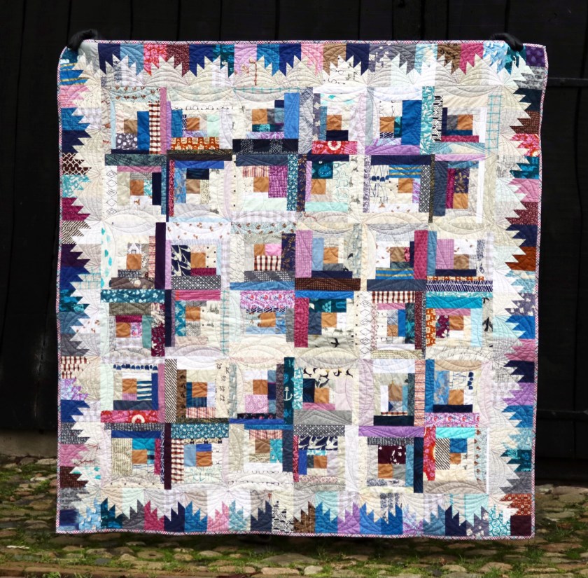 That orange fabric below the line of scrappy log cabins will likely be the next color–but who knows. I don’t.