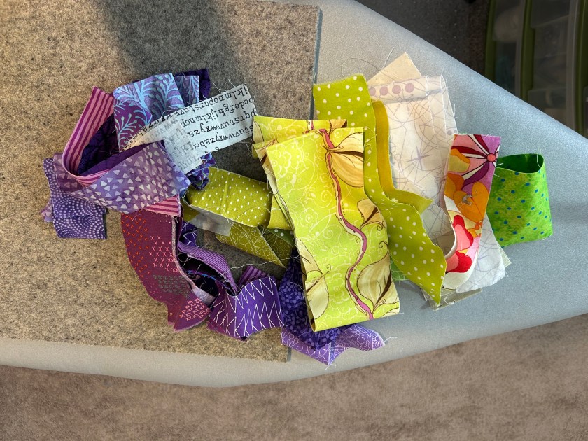 Here’s the 11th block all ready to sew. Maybe the 12th will be a dark green? I don’t know yet how I’ll sew these blocks together, but it will be an improv quilt. Probably it will need a solid field fabric to join everything together.
