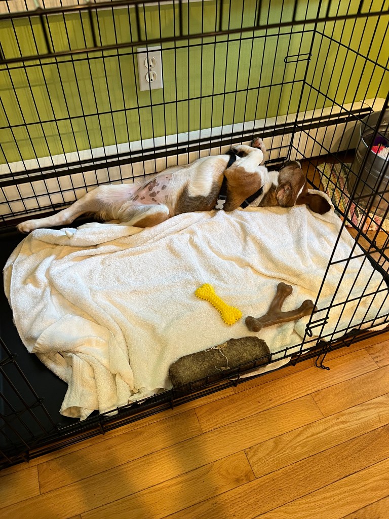 I’m hoping tonight will be another dry and clean crate night. I am hoping we are over the worst hump and that good food can build him back up again.