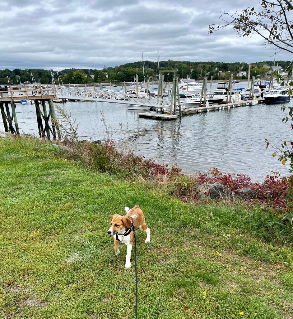 We had a little walk in the big beautiful field next to the water. It was slow going as EVERY blade of grass has to be sniffed and thoroughly examined. LOL. And I let him as he so appreciates a “sniffing” walk. He’s like a vacuum cleaner moving along with his nose on the ground just hoovering up all the new things he smells in his world.