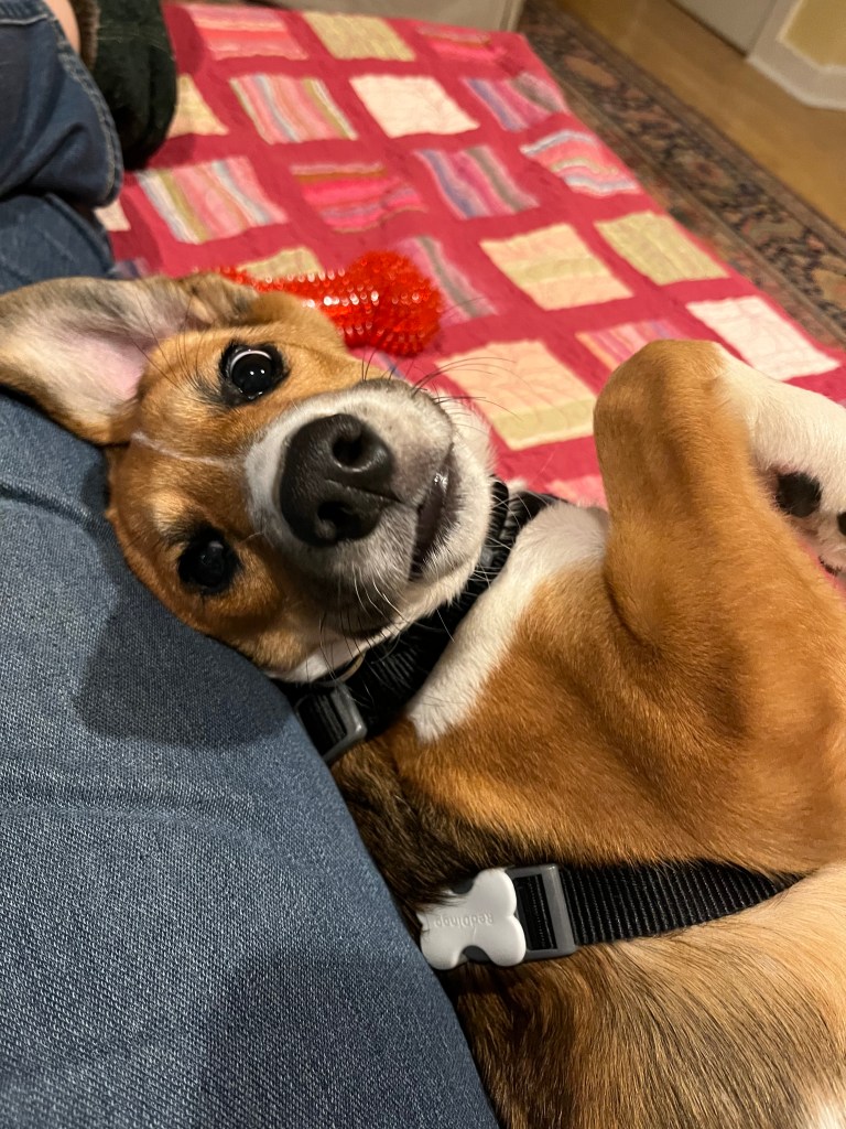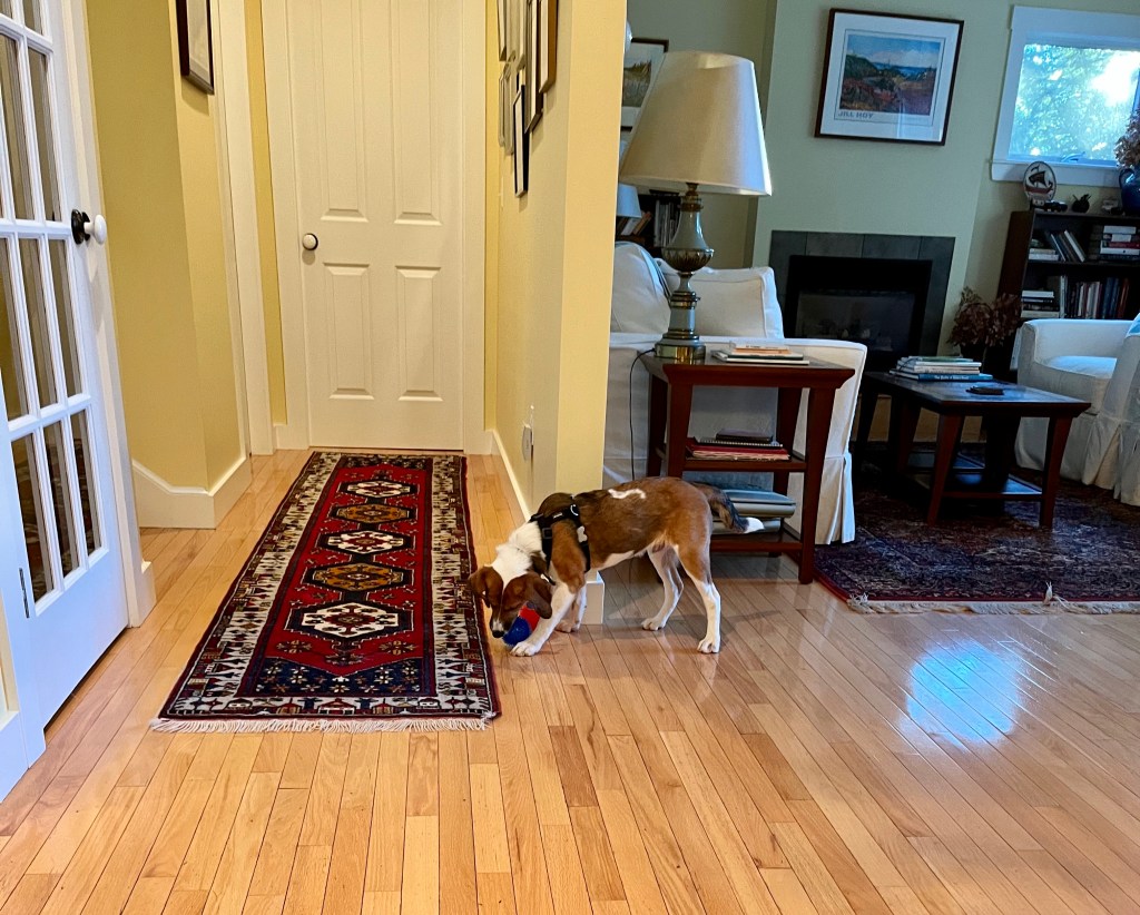I seem to have lost yesterday in terms of posting. We had a good day. There were two good walks, ONE good poop (no more diarrhea), no accidents in the house for many days now—and I’m learning when he needs to go out. He’s started giving me “the look” that says “I need something.”