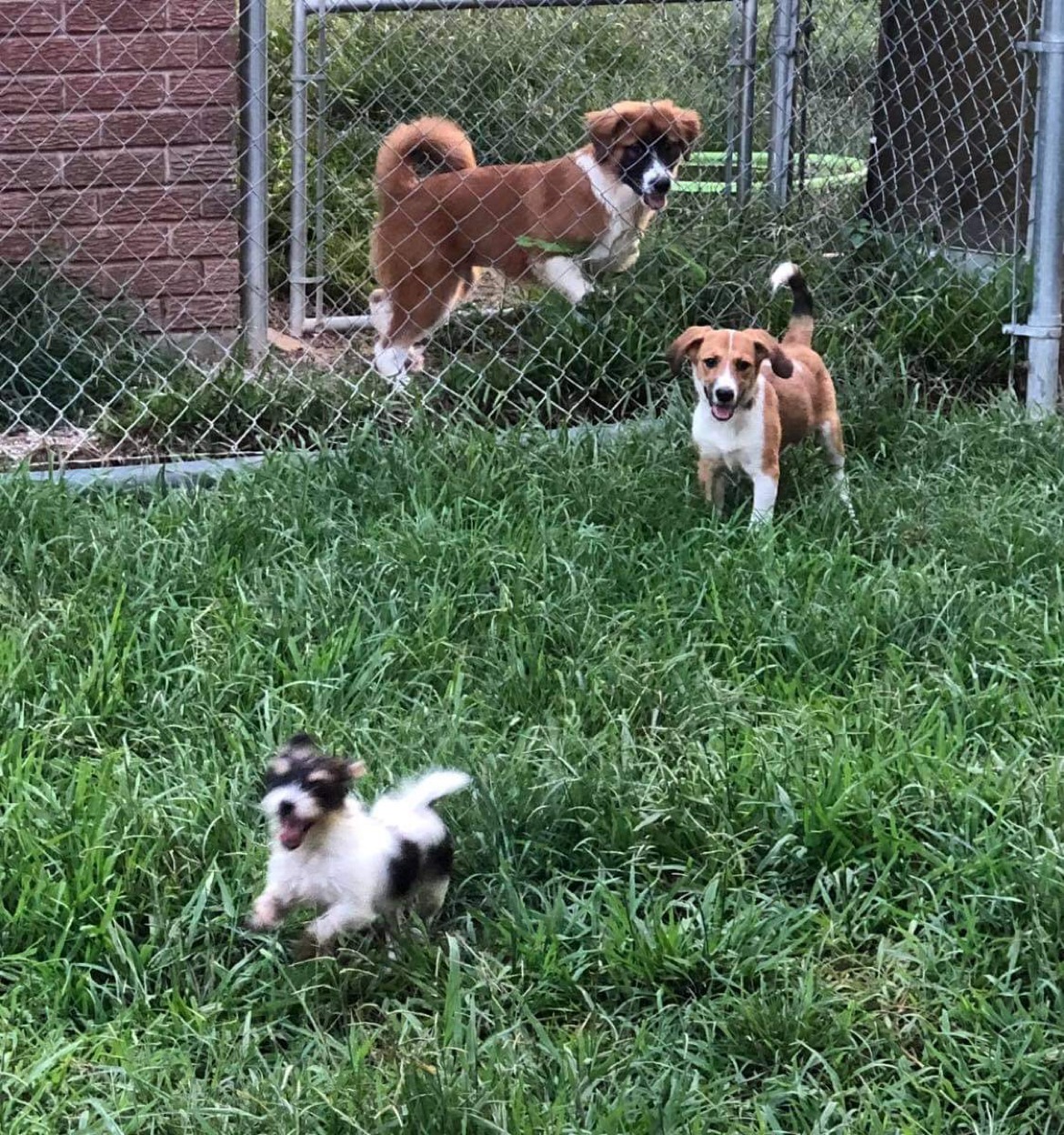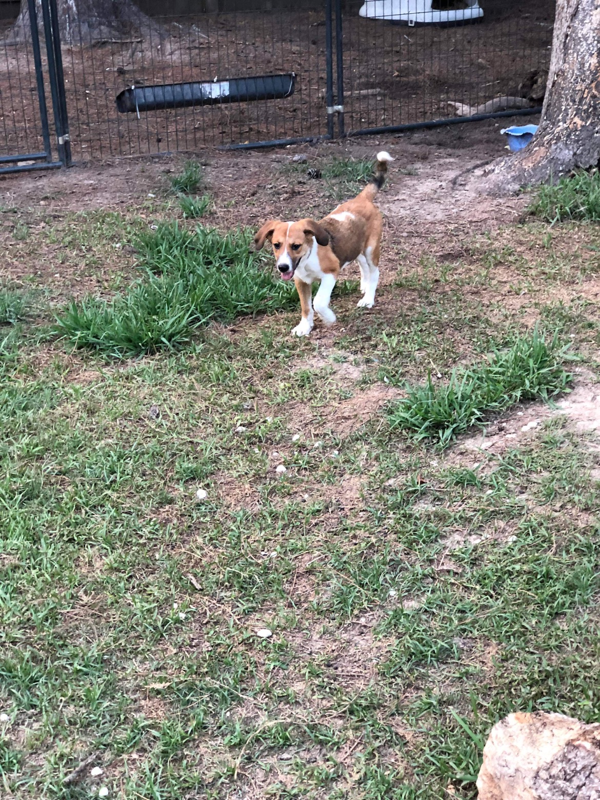 The running blur in front was one of a set of dogs rescued while living in a brush pile. The bigger dog in back—wait for it and don’t read further without bracing yourself—was being used as BAIT for ALLIGATORS. I can’t even…. What is wrong with people—to have such little regard for another sentient being. The dog had a horribly infected foot, which got even worse after being rescued, but which is now healed. And there is my Jackpot, with his tail curved in excitement over his back.