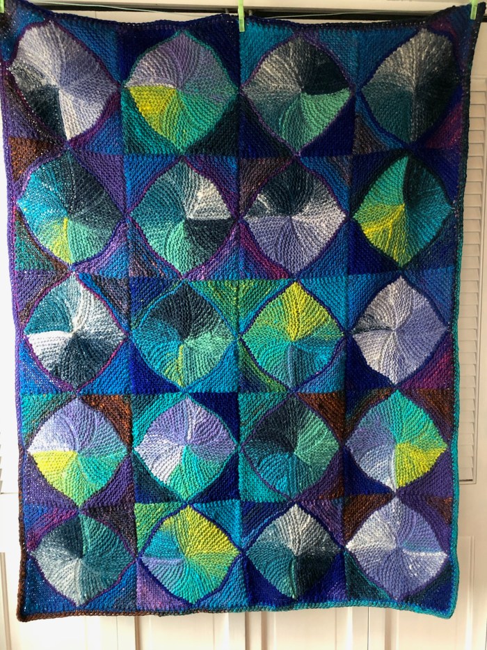 For this current selvage-knitting project, when I get a big enough central piece, I’m going to stop there, pick up stitches along one side, and create another “patch” or ”block.” And then, when I’m done there, I’ll stop and move to another side. It might take…years. LOL.