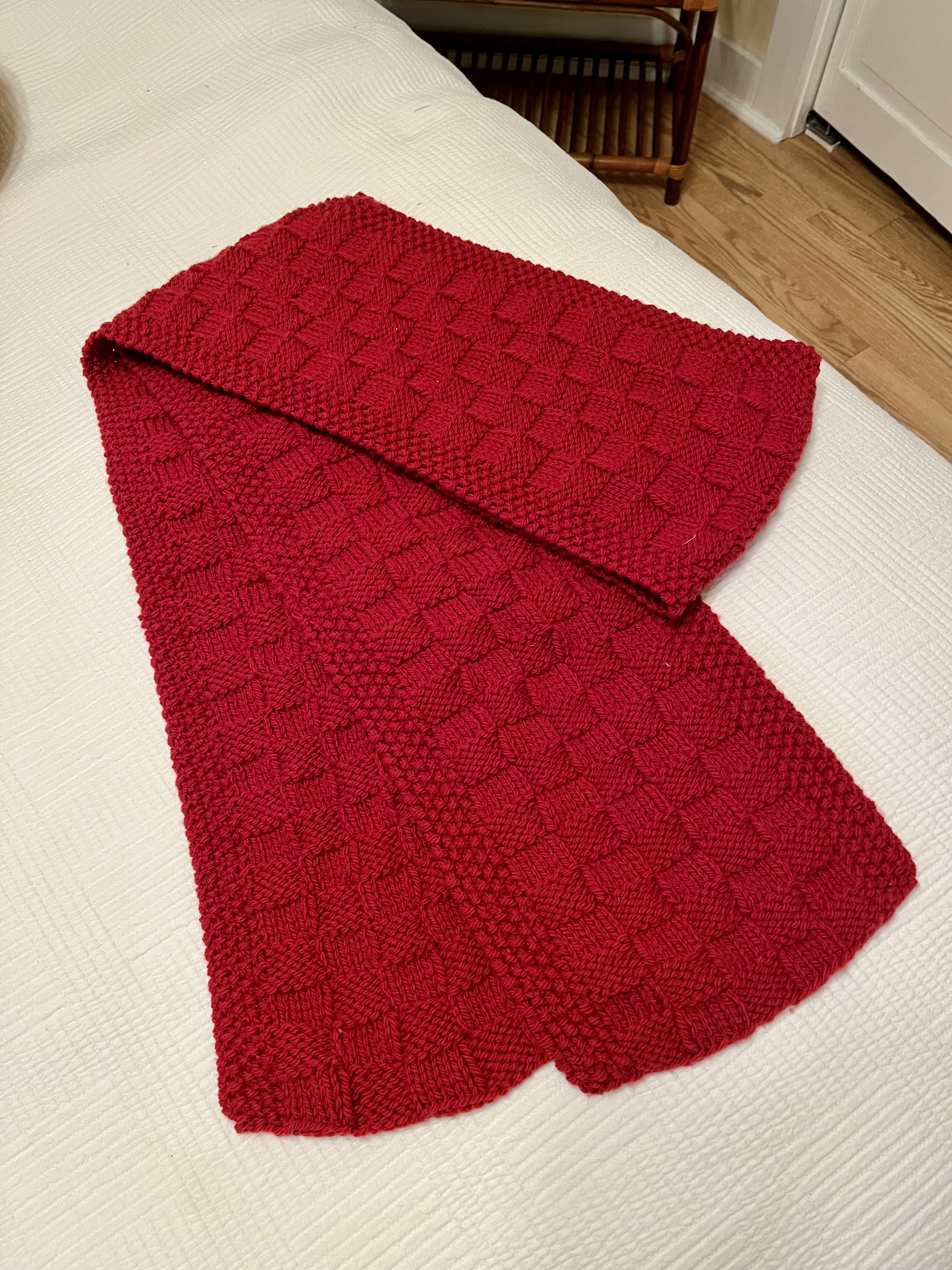 I FINISHED the LONG, LONG, LONG red wool scarf I’ve been knitting here and there. It’s all ready for winter, and I won’t be fussing about a too-short scarf this year. It’s at least 6 feet long and so yummy.