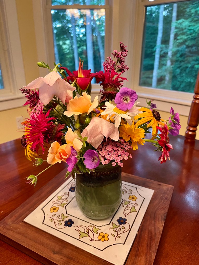 I also made a quilt inspired by Gwen Marston and Freddie Moran’s work AND by how Debbie Jeske of The Quilter’s Table blog used and altered this idea: “Liberated Wedding Ring, made in the fall of 2021.