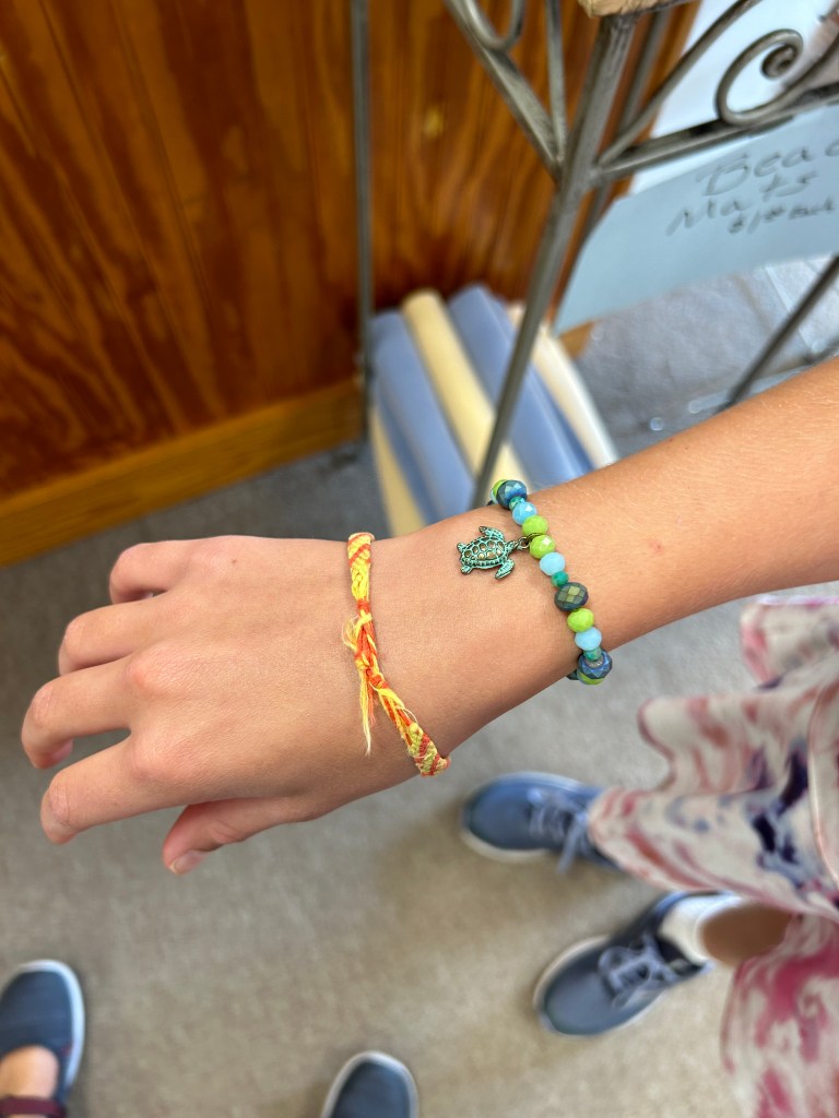 Meanwhile I had a LOVELY weekend with two granddaughters staying overnight Friday and Saturday. We kept busy, which included three swims in the pool to which I have access as part of my HOA. We visited, shopped (bead store for making a necklace and a bracelet), went to the library, cooked (a soup lesson here), watched tv, made popcorn, and in general had a lovely weekend. (This granddaughter weaves friendship bracelets with a kind of hard loom.)