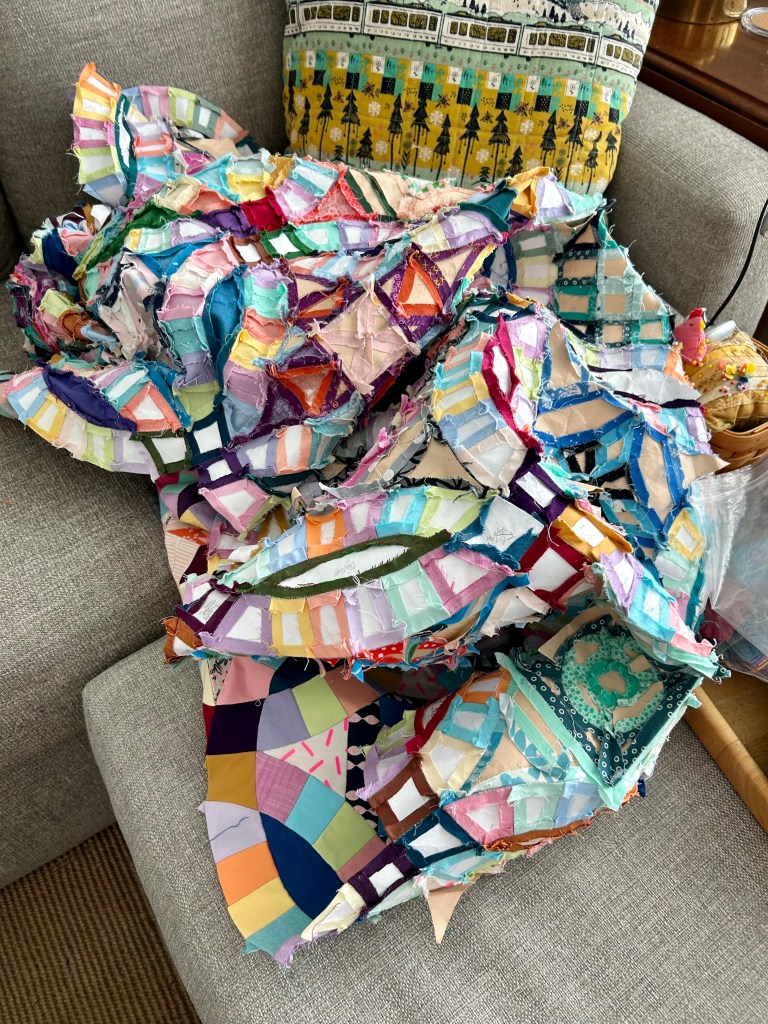 Here’s the real problem now. All those templates now have to come OUT of the quilt. I pulled out templates for hours yesterday and don’t feel like I made much of a dent. I’ll leave the templates around the edges until I sew in the borders–for stability.