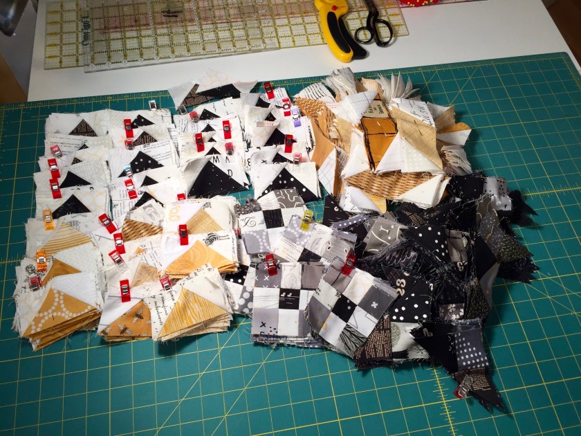 I relaxed by making some Wild and Goosey blocks with my teeny scraps–a pattern from Bonnie Hunter.