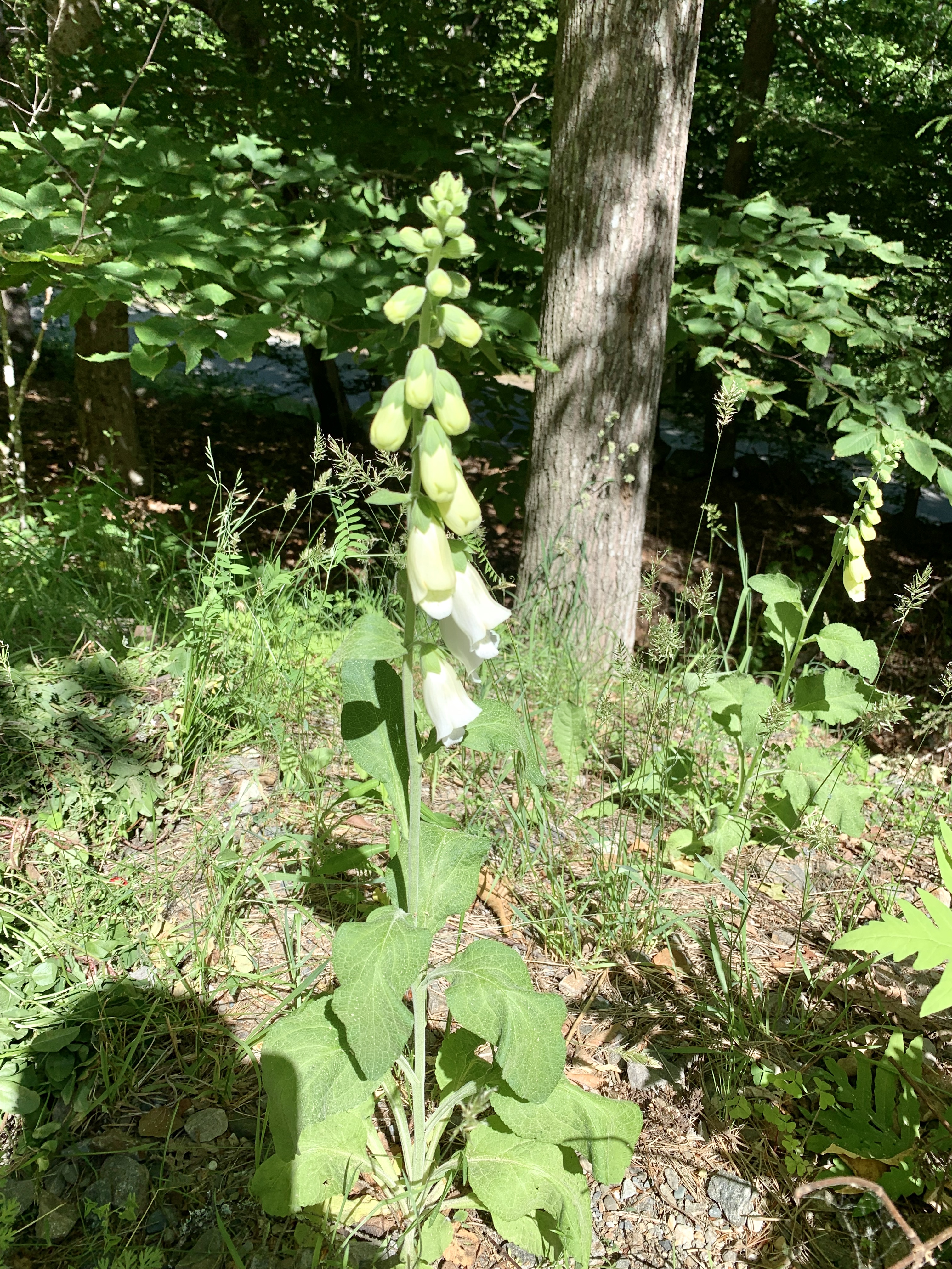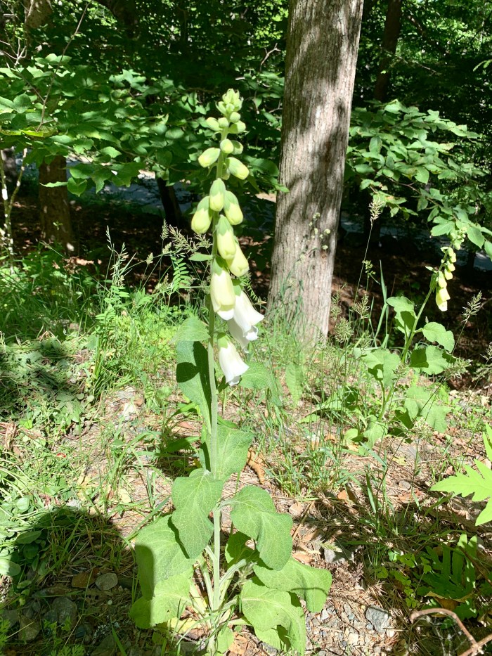 Three white Fox Glove plants. I also found two more along the driveway over by the rock wall. (Yes, I know they are poisonous for dogs, but AC doesn’t really chew at plants unless I weed and throw them for him to chase, and I won’t be doing that with these plants if by chance they get weeded.)