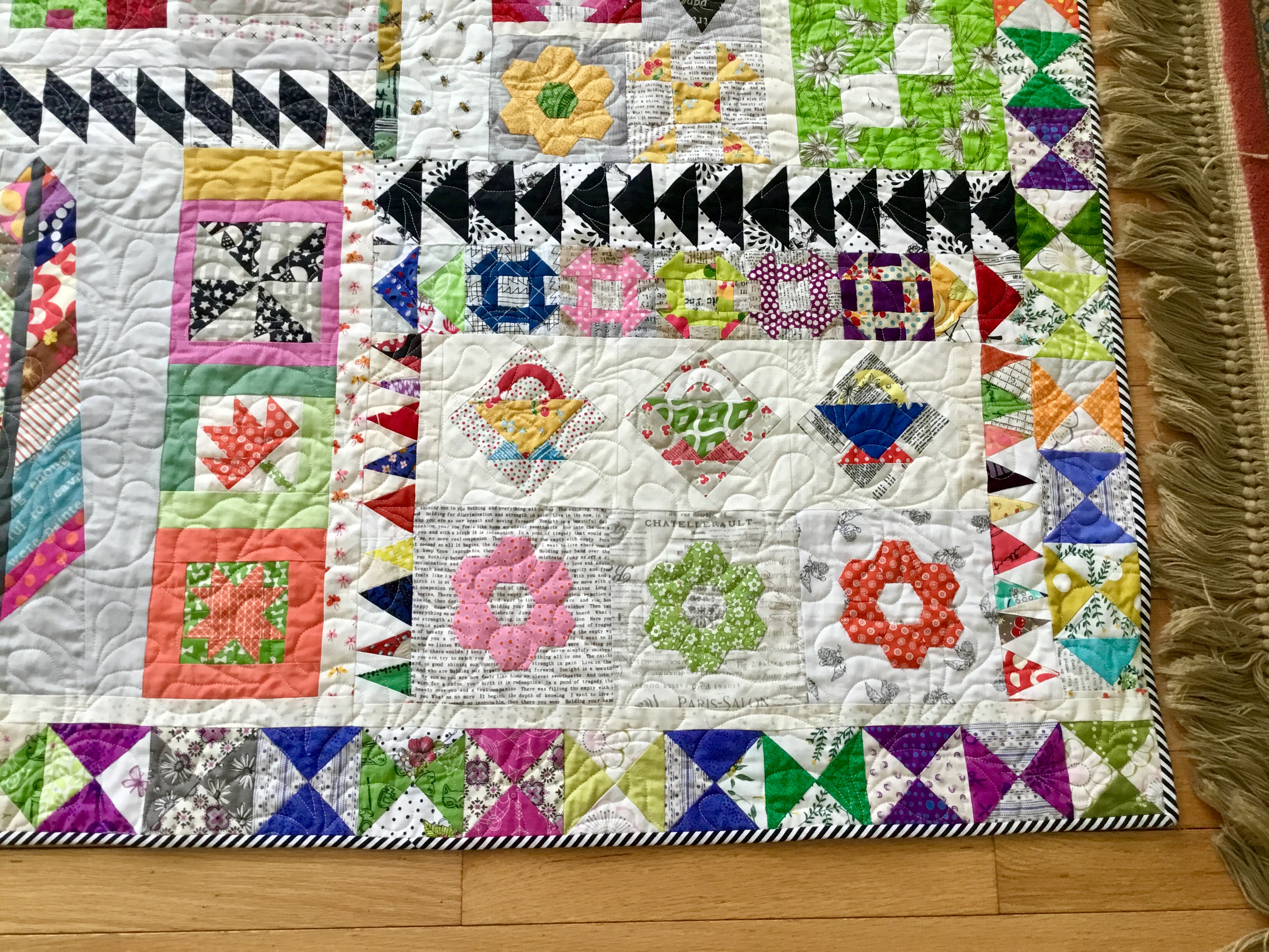 It’s been quilted now, and the binding is on and getting sewn down at night. Can I just say it is yummy to have on one’s lap. And this one is meant to be dragged around and loved and washed and USED.