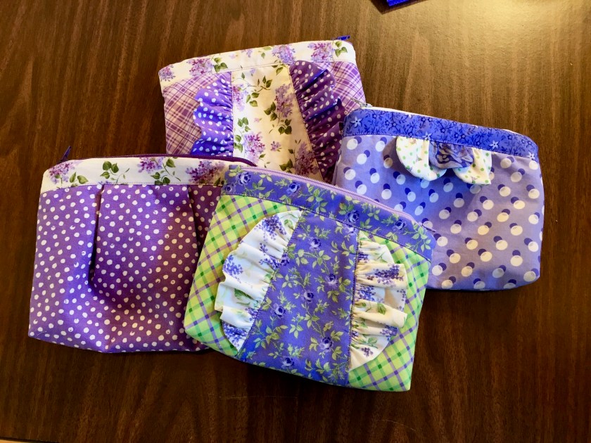 Next, she made these little pouches for her daughter’s wedding in July–gifts for the bridesmaid’s. Four done!