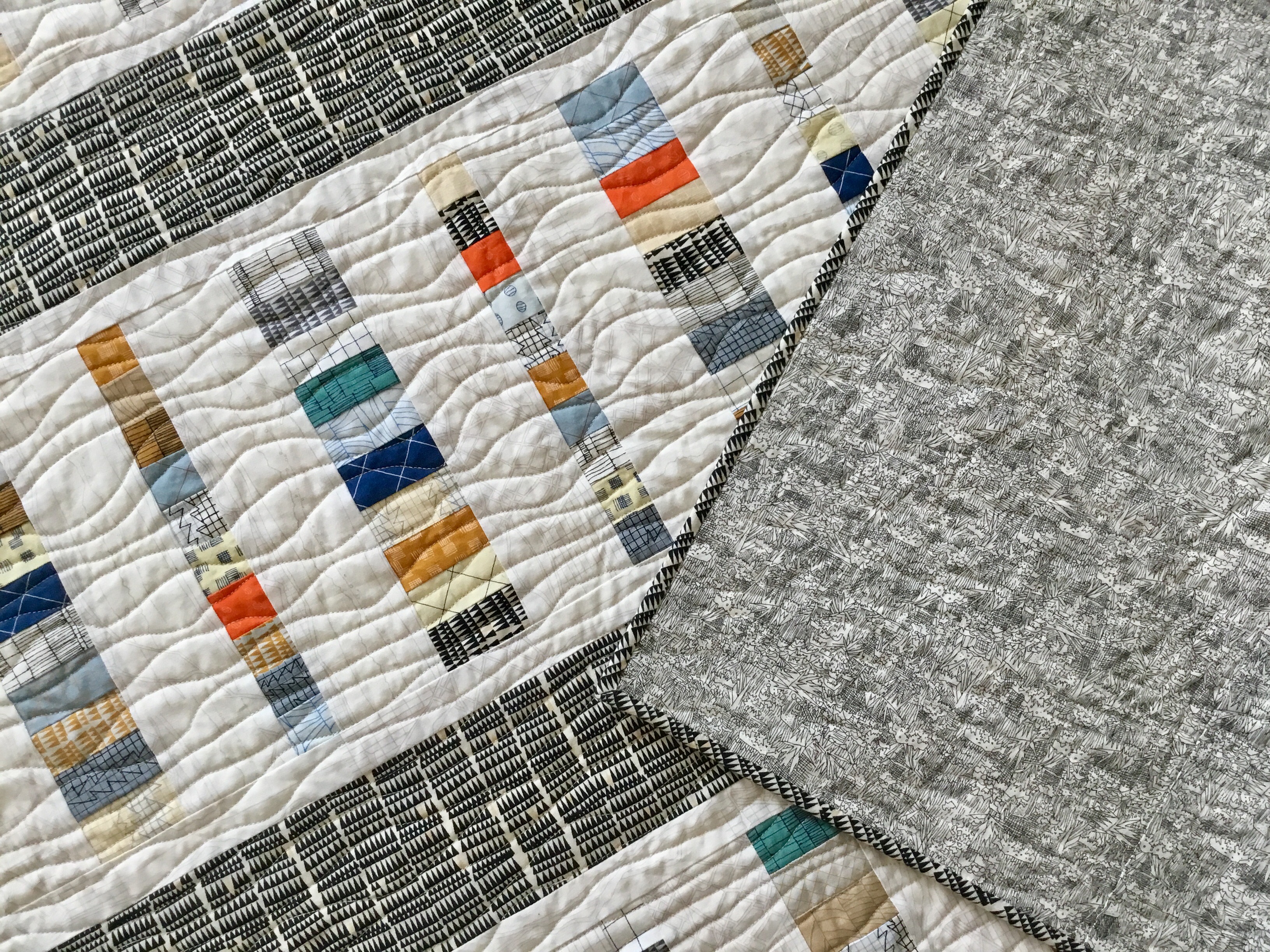 The backing was in my stash. The print is an older Carolyn Friedlander fabric that I had left over from another quilt. It’s PERFECT for this quilt.