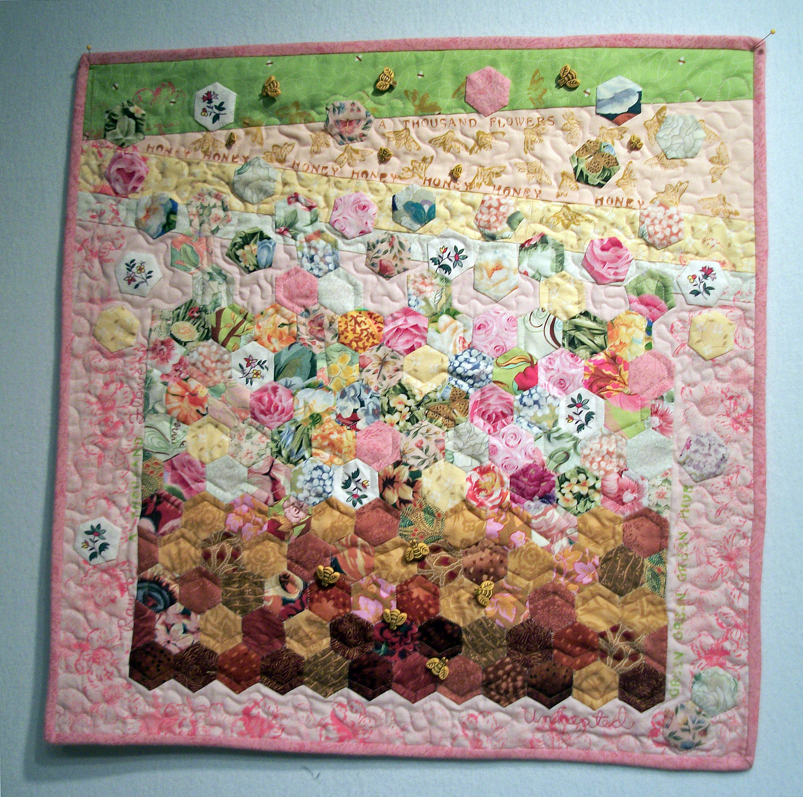 I called it “Bee Land,” after finishing the binding a few days ago.