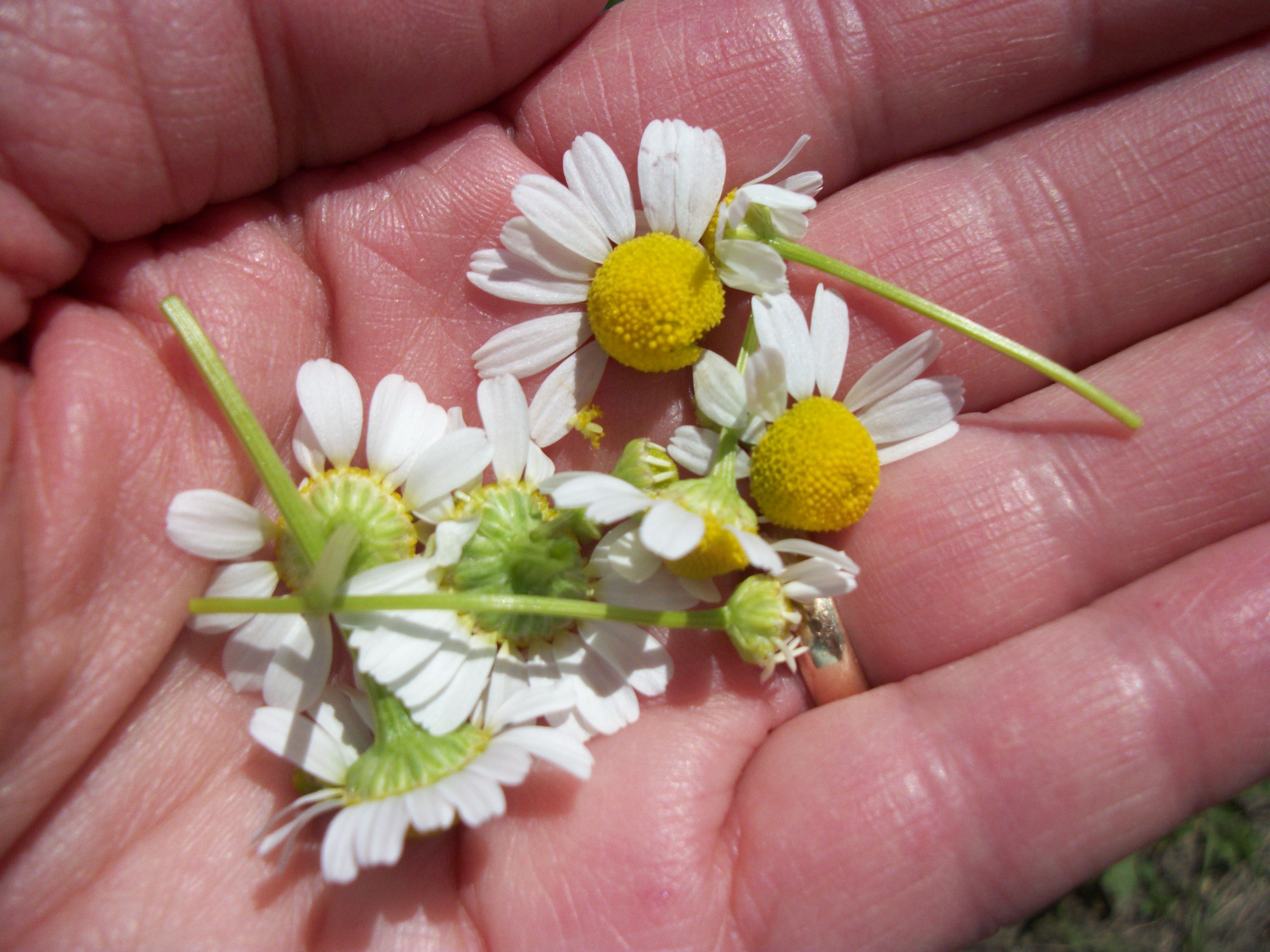 Kristin told us that chamomile tea is made with the chamomile flowers. She dries them and adds dried mint, lavender, and lemon balm–to make their tea–an idea that really appeals to me. I’ll be looking for some chamomile plants for this year and seed for the next. Here are the flowers: