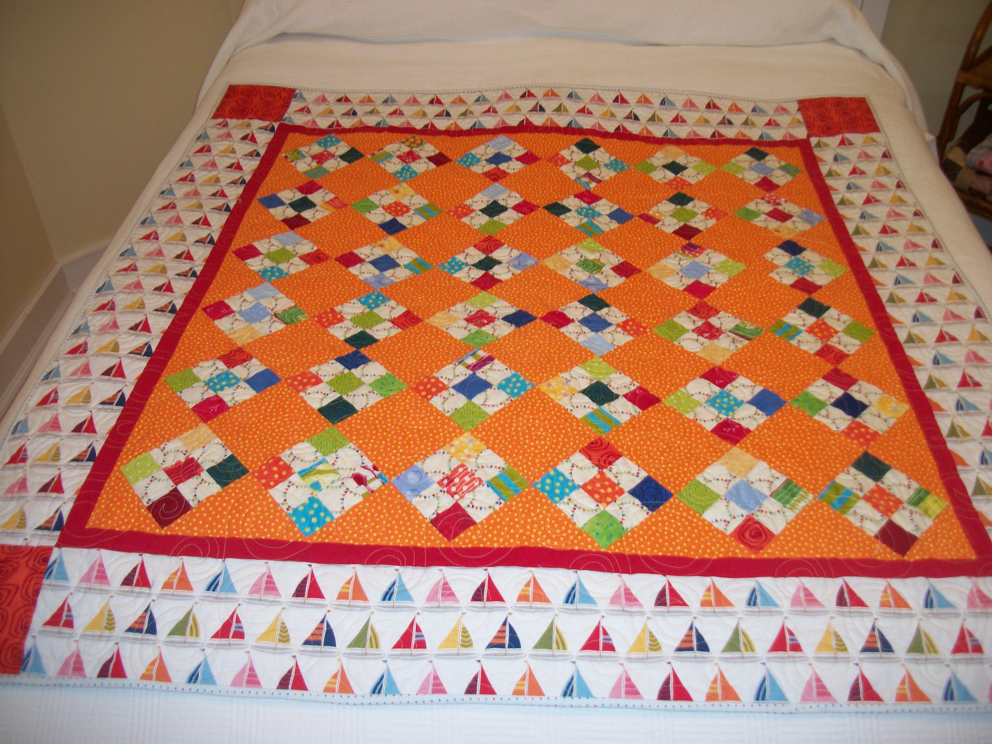 The parents wanted BRIGHT–and when I saw this bright boat sails fabric, I knew what I wanted to do with it.