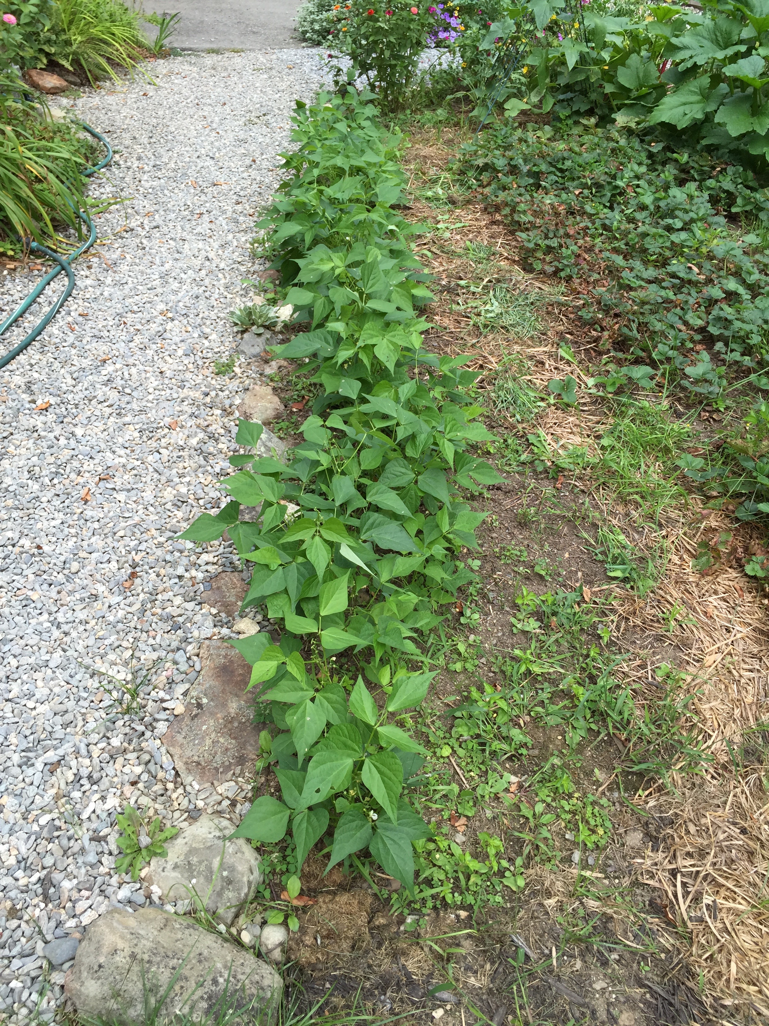 When granddaughter Talula was here in early August, she planted this row of beans for me: haricot vertes.
