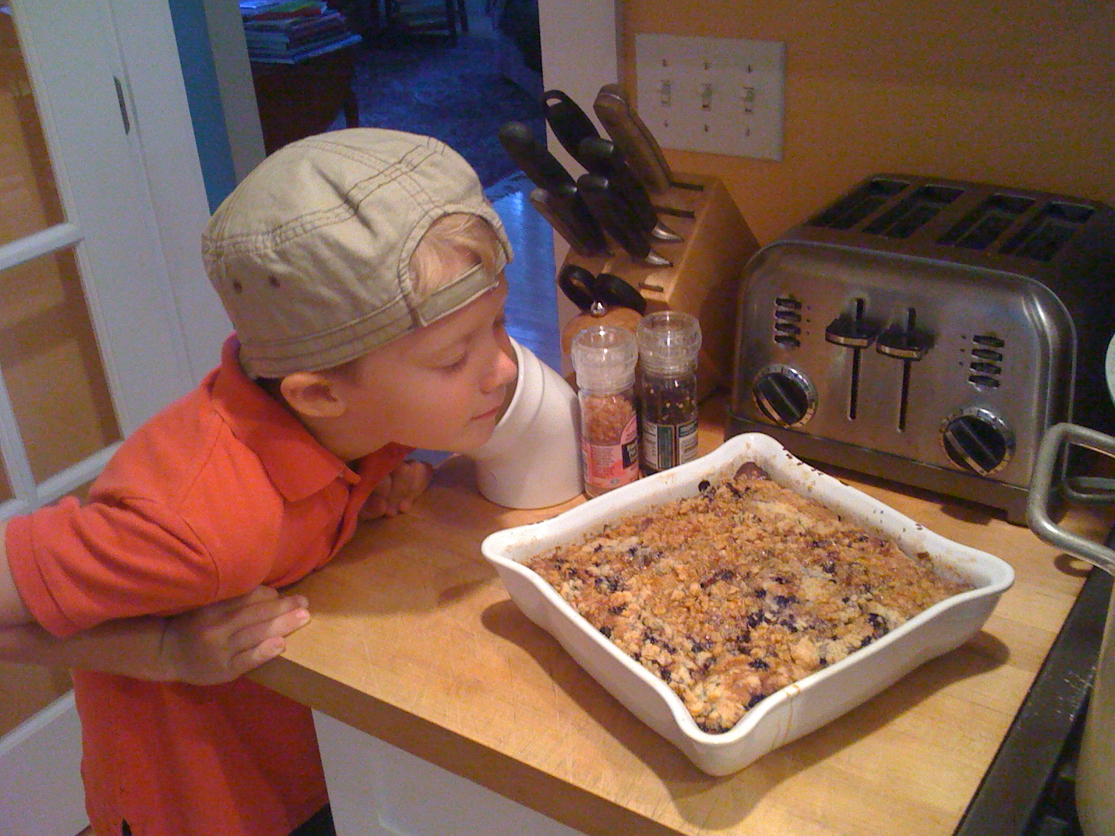 We’re still making desserts this summer from recipes in RUSTIC FRUIT DESSERTS, Julie Richardson and Cory Schreiber:  http://www.amazon.com/Rustic-Fruit-Desserts-Crumbles-Pandowdies/dp/1580089763.   (A book suggested by Tara Derr.)  We freeze about 20 pounds of ORGANIC wild Maine blueberries every August, which our wonderful CSA, Hope’s Edge, makes available to us.  I don’t know if you’ve ever had wild Maine blueberries.  They are much smaller than the big round ones most people can get in supermarkets.  And, they’re chock full of flavor.  Once you’ve had these little guys, the big blueberries seem utterly tasteless.  So, be warned!