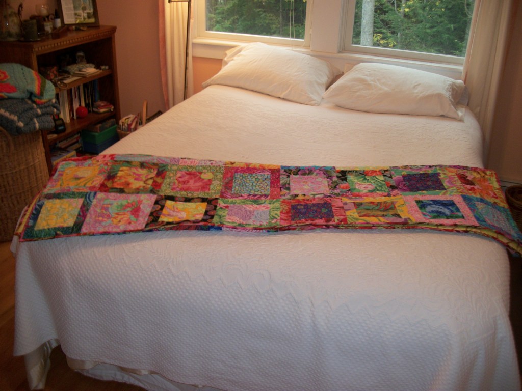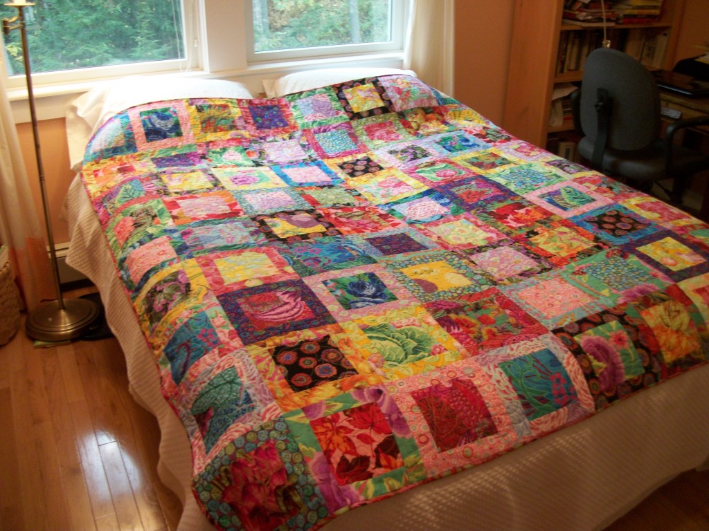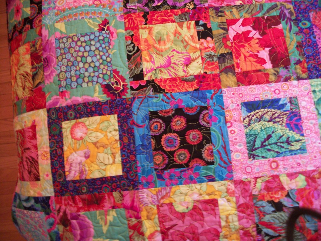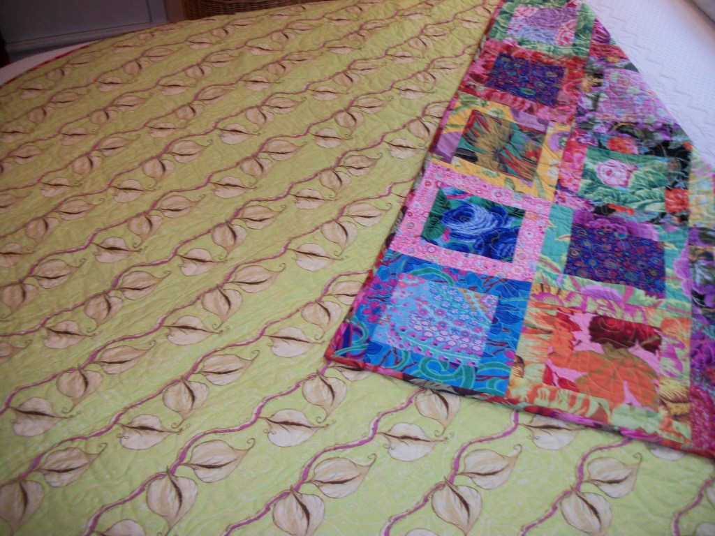 One of the really fun things that has happened during the current Covid isolation has been the digging through my stash to find backings. I’ve been trying to find a use for this Kaffe Fasset print for over 15 years now. And it is PERFECT for the backing on this quilt.