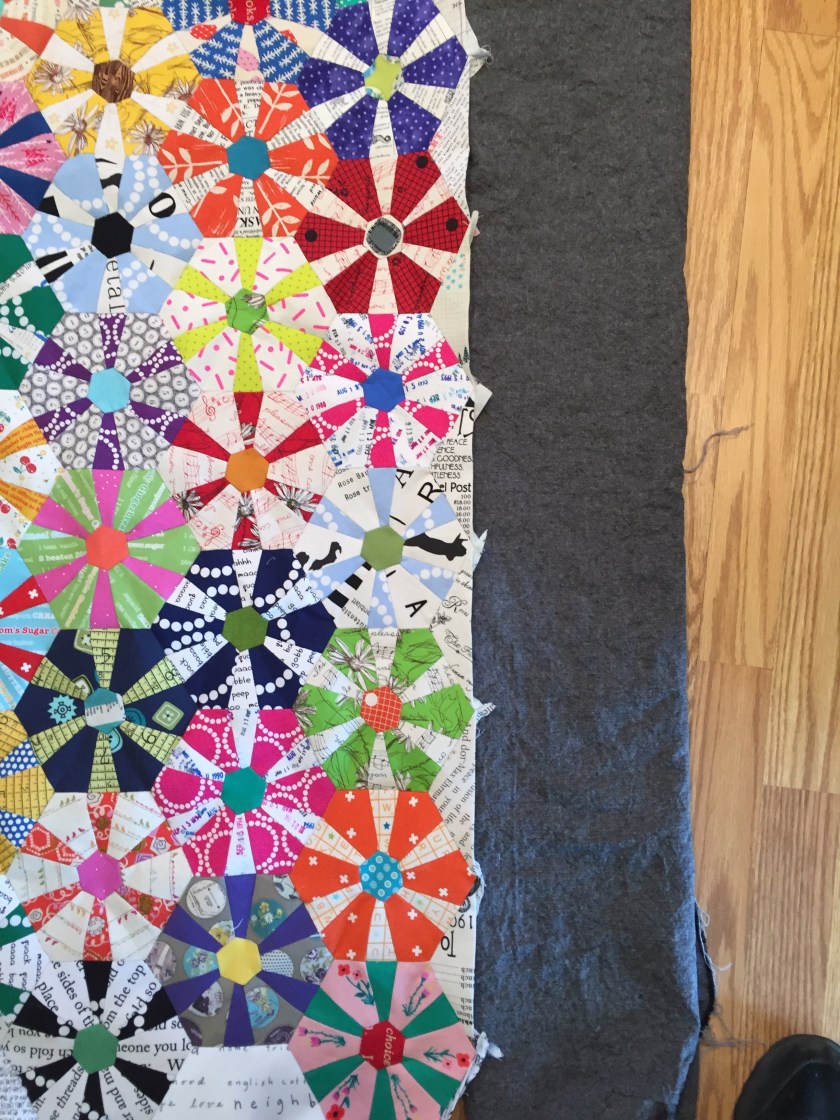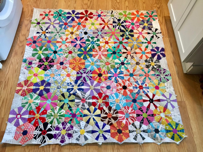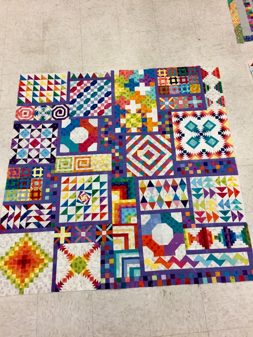 And that’s not all of it. There are piles on the cutting table sorted into “like” blocks, with space left for cutting needed fabric.
