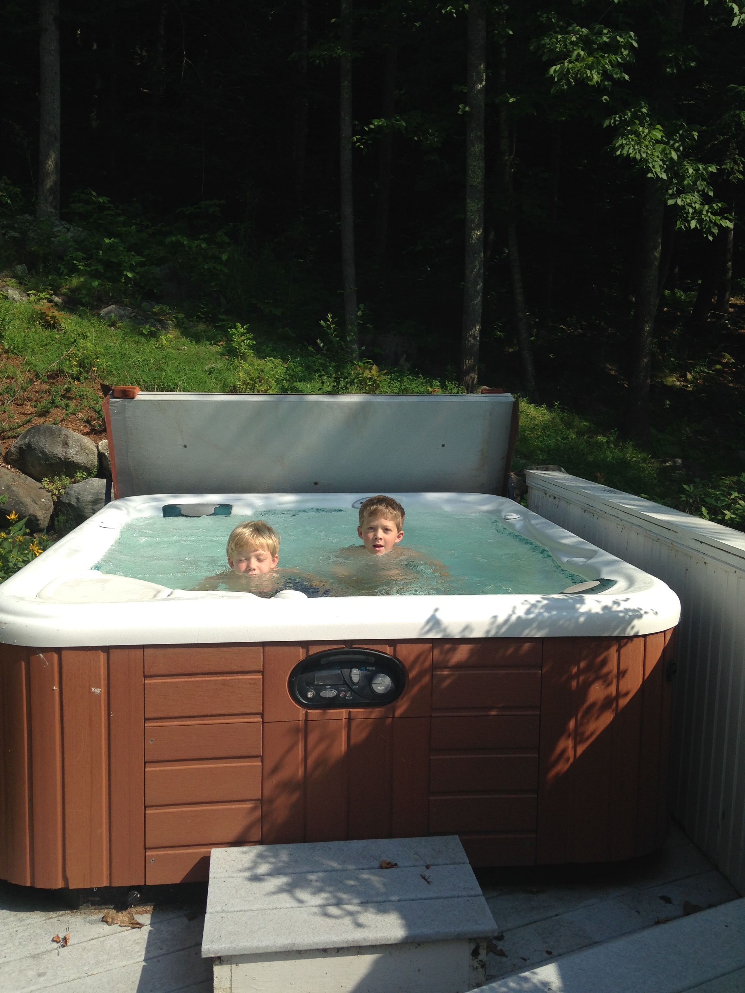The boys swam most days in the morning during the camp–which involves VERY cold water.  So we lowered the temps in the hot tub (children under 12 don’t have the body temperature alarms that adults have) and let them use it to warm up daily.  They soon discovered the pleasures of skinny dipping in the hot tub and thought themselves very naughty.