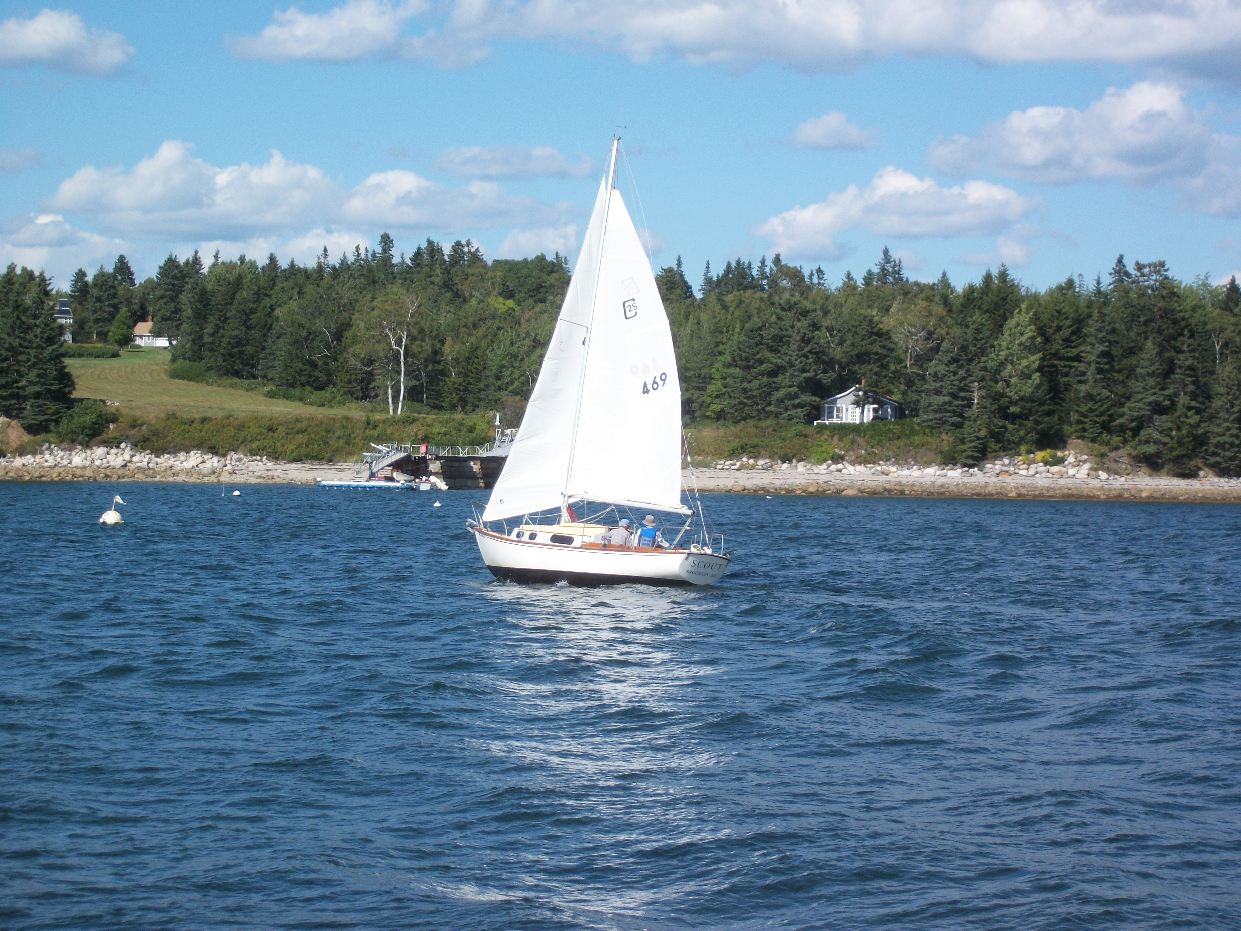 Here’s the Riggin’s little sail boat with Justin at the helm at Wood Boat Harbor: