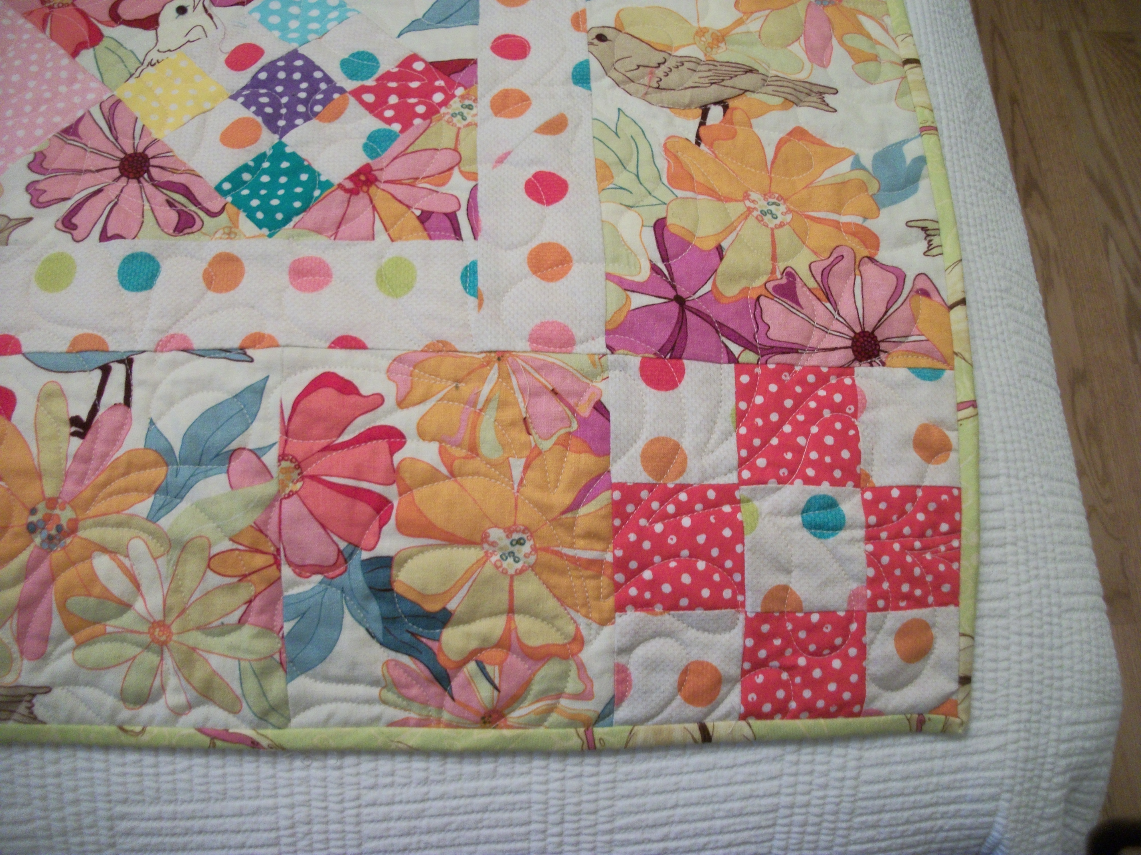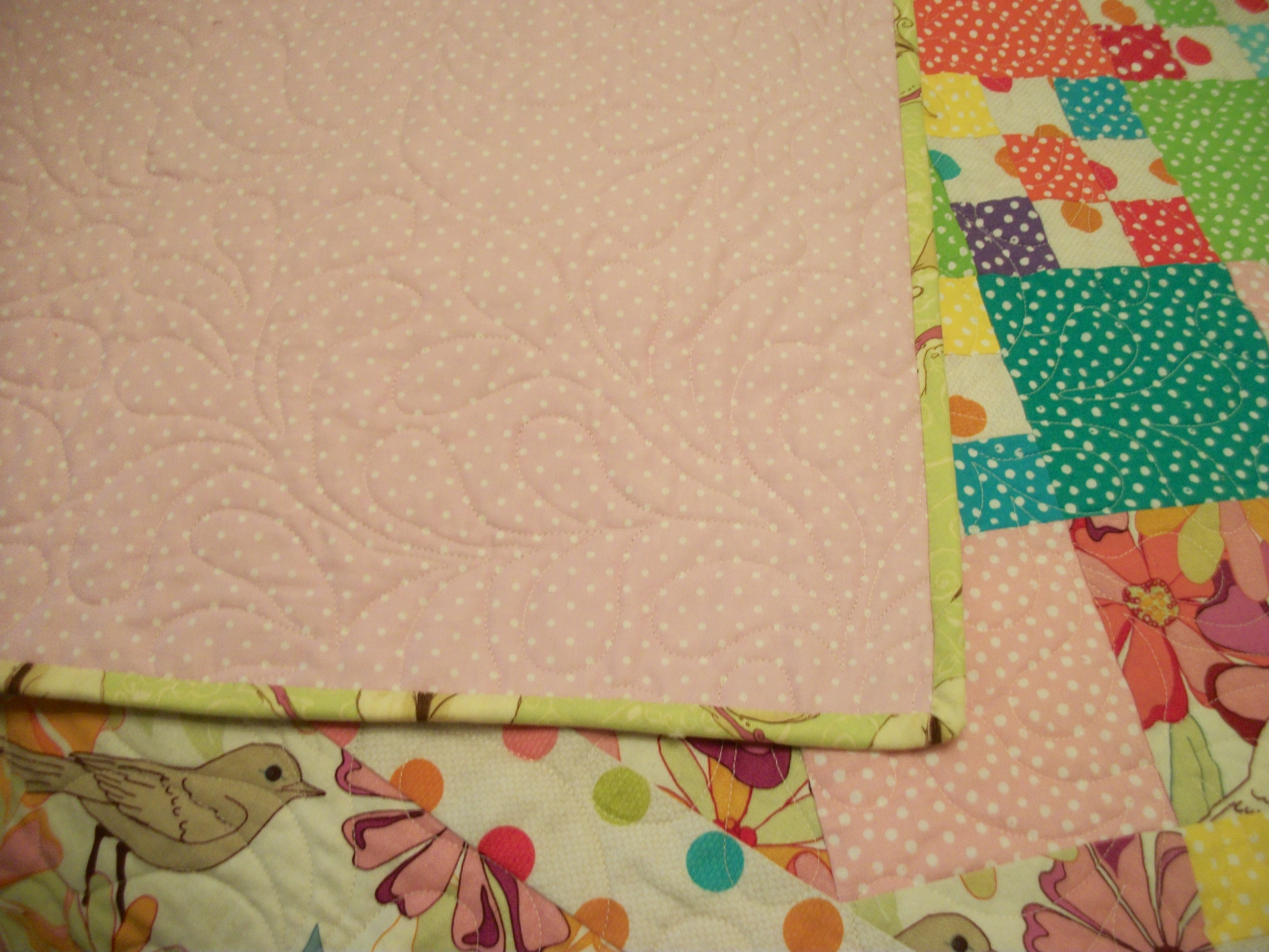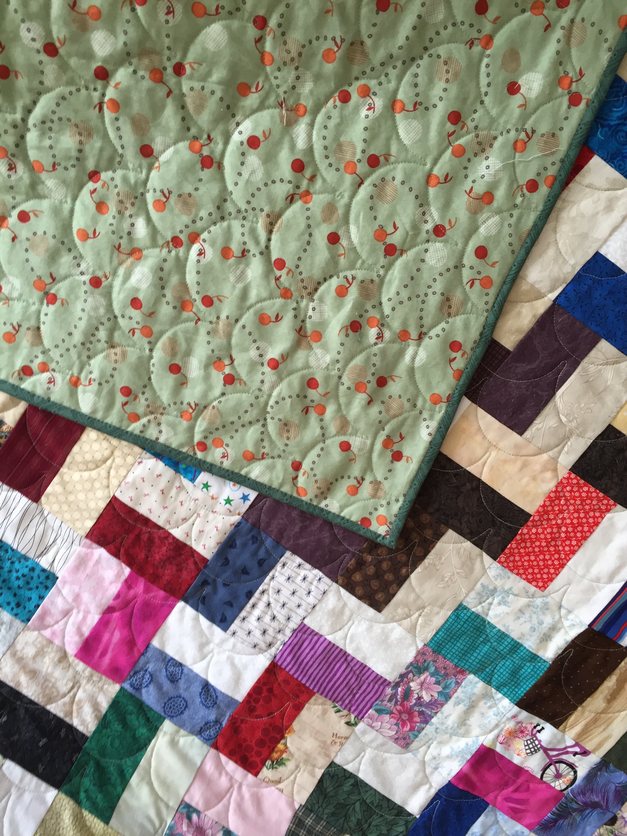 I’ll be layering and pinning the solid scrappy trip/granny quilt from Then Came June (Checkered Garden) today. I want to diagonal grid quilt it on a domestic, but will pin it on the longarm. I loved Then Came June’s version and thought it would be a good use for the solid scraps I have. It’s bright and wild. And maybe that’s it’s name?