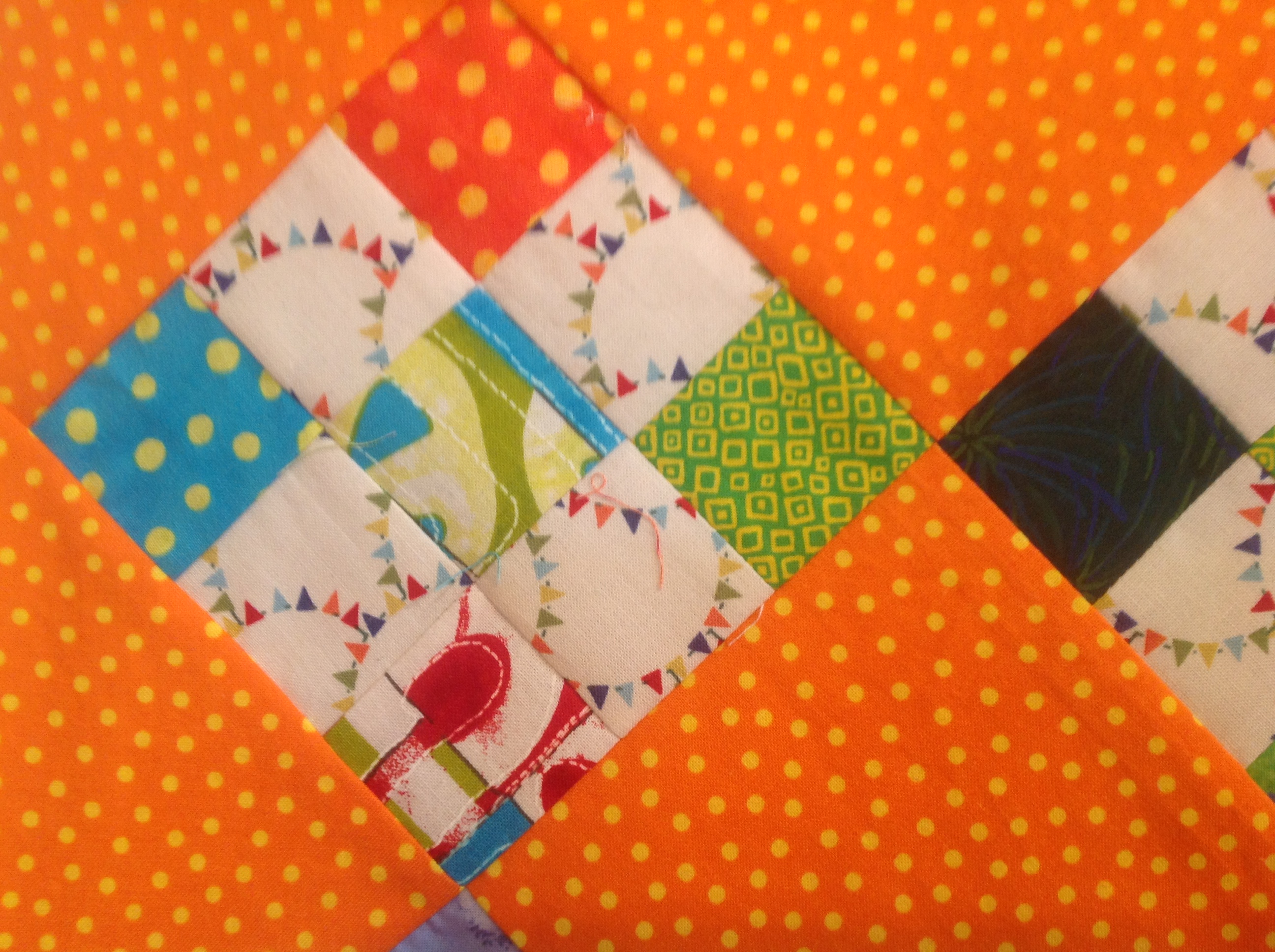 And I love her BIG, BOLD border.  Rhea has the greatest eye for color and pattern.  Here’s a close-up of her blocks and that striped border: