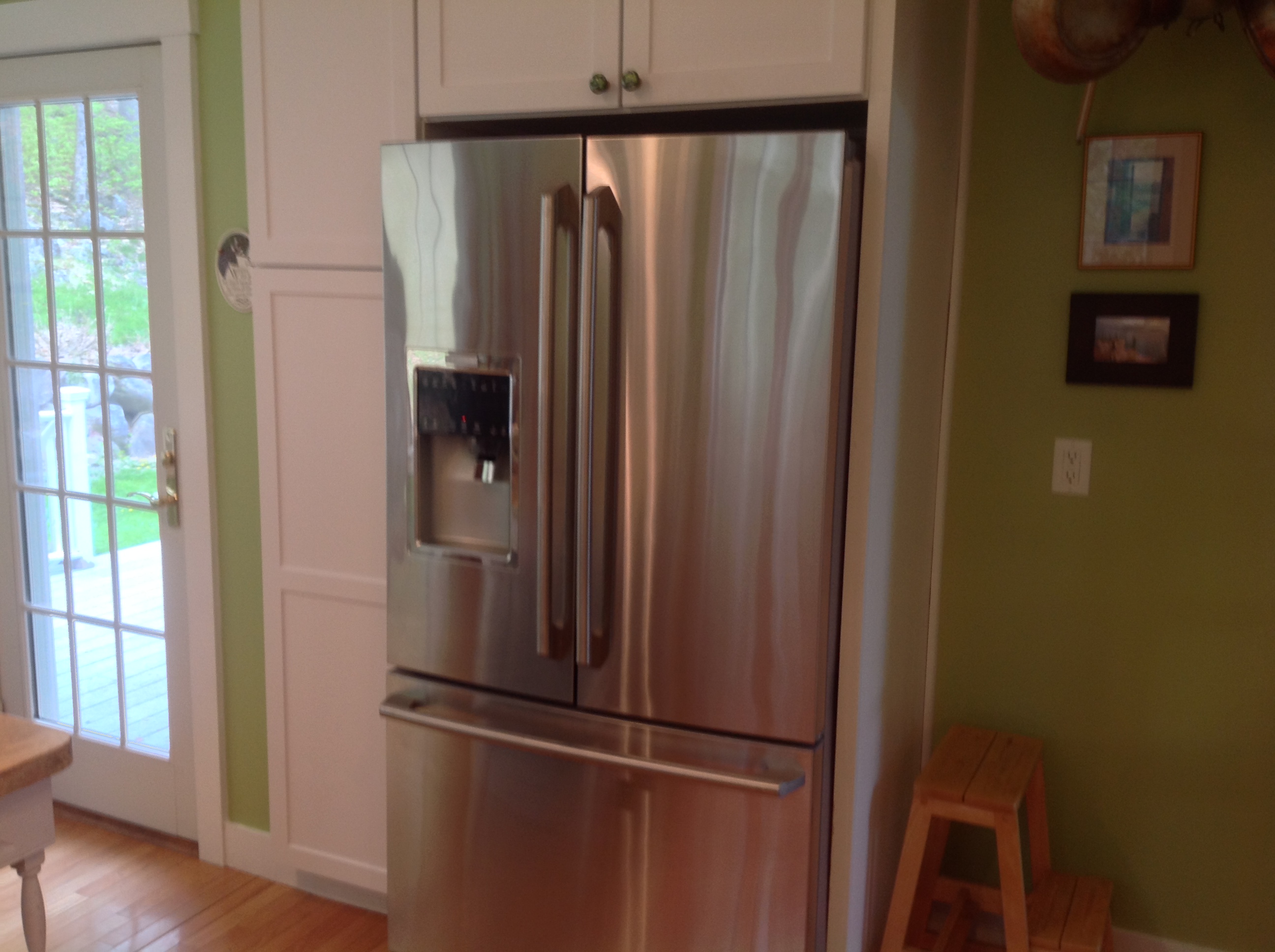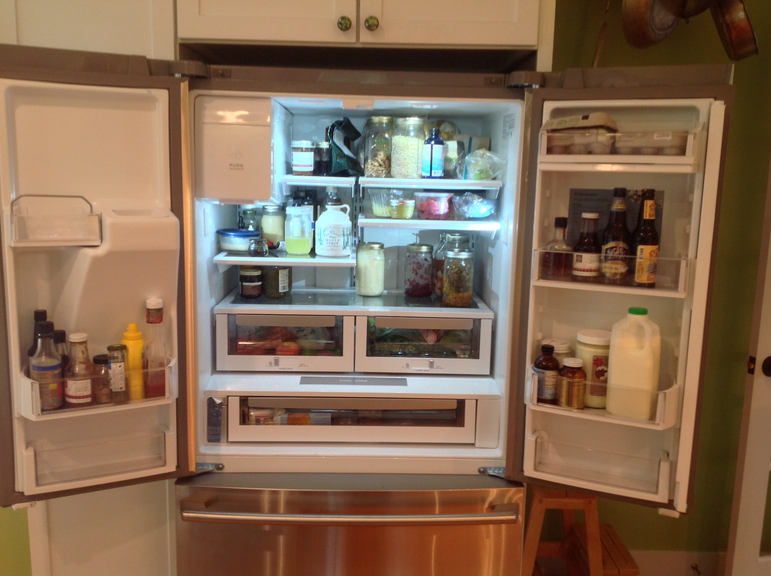 The refrigerator went belly up last week.  The new one is being installed as I write, and I am glad as it’s a long trip to the garage every time I want a slice of lime for a cup of tea, not to mention any serious cooking.  The good news is that the new refrigerator is gorgeous–French doors and a slide out freezer drawer below.  I HATED the side-by-side GE Profile–it had to be designed by someone who never cooks or stores food.