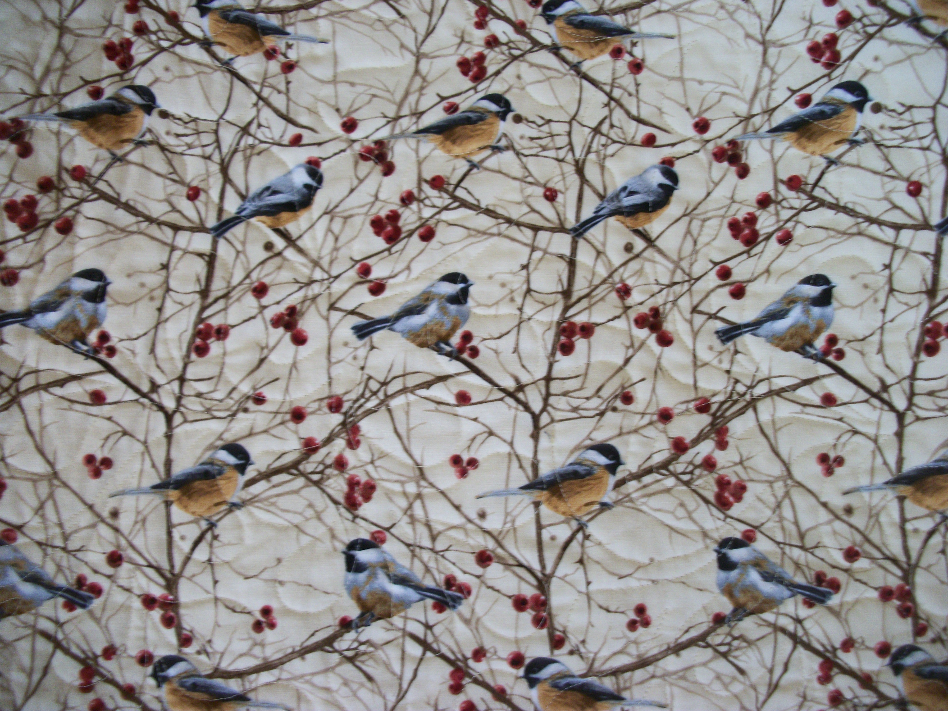I quilted with a cream thread with a pantograph called “12-inch Simple Feathers” by Anne Bright–and it was perfect.
