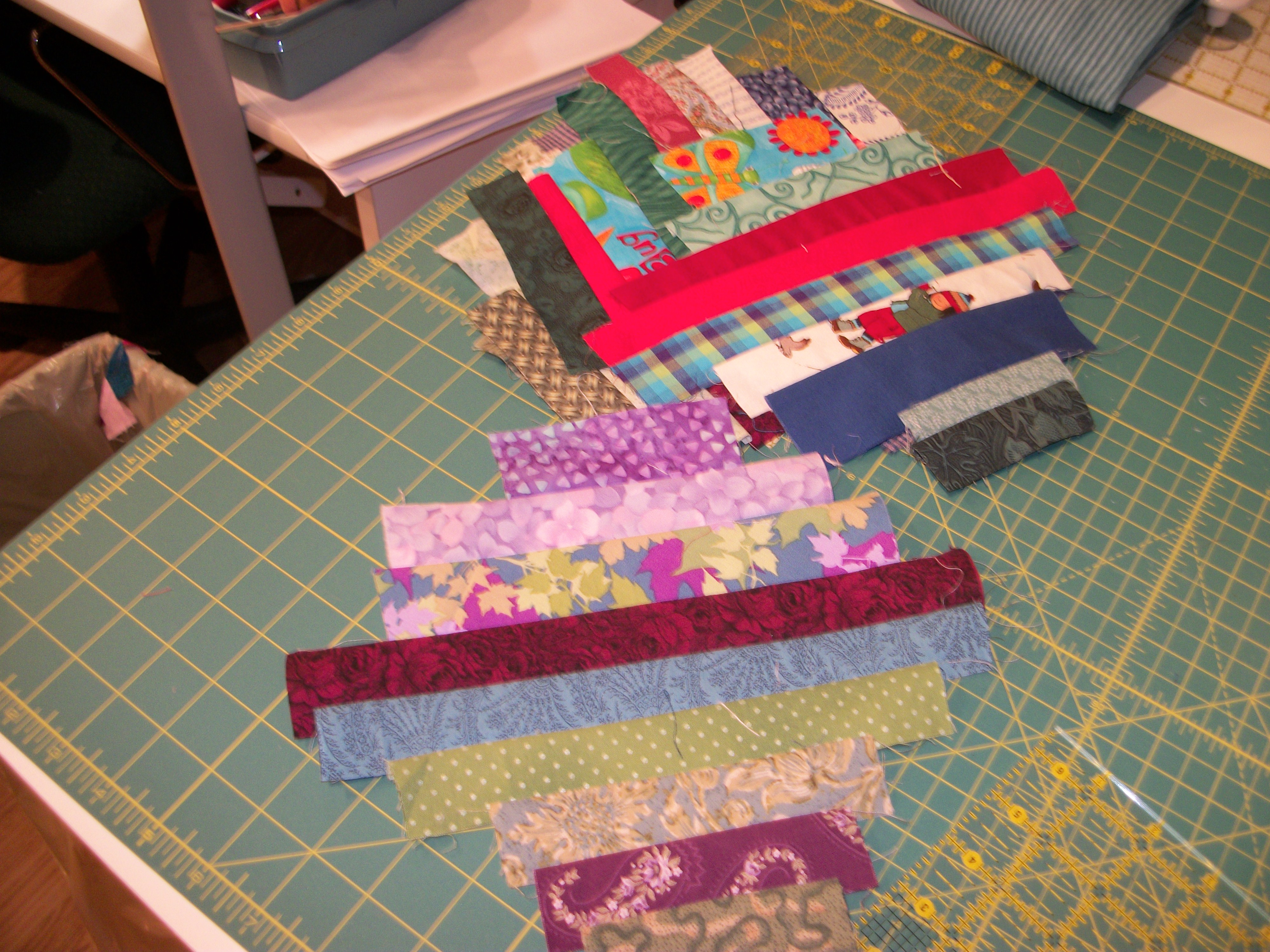 Right now, though, I’m interested in creating sashings. So here’s my growing pile of sashings: