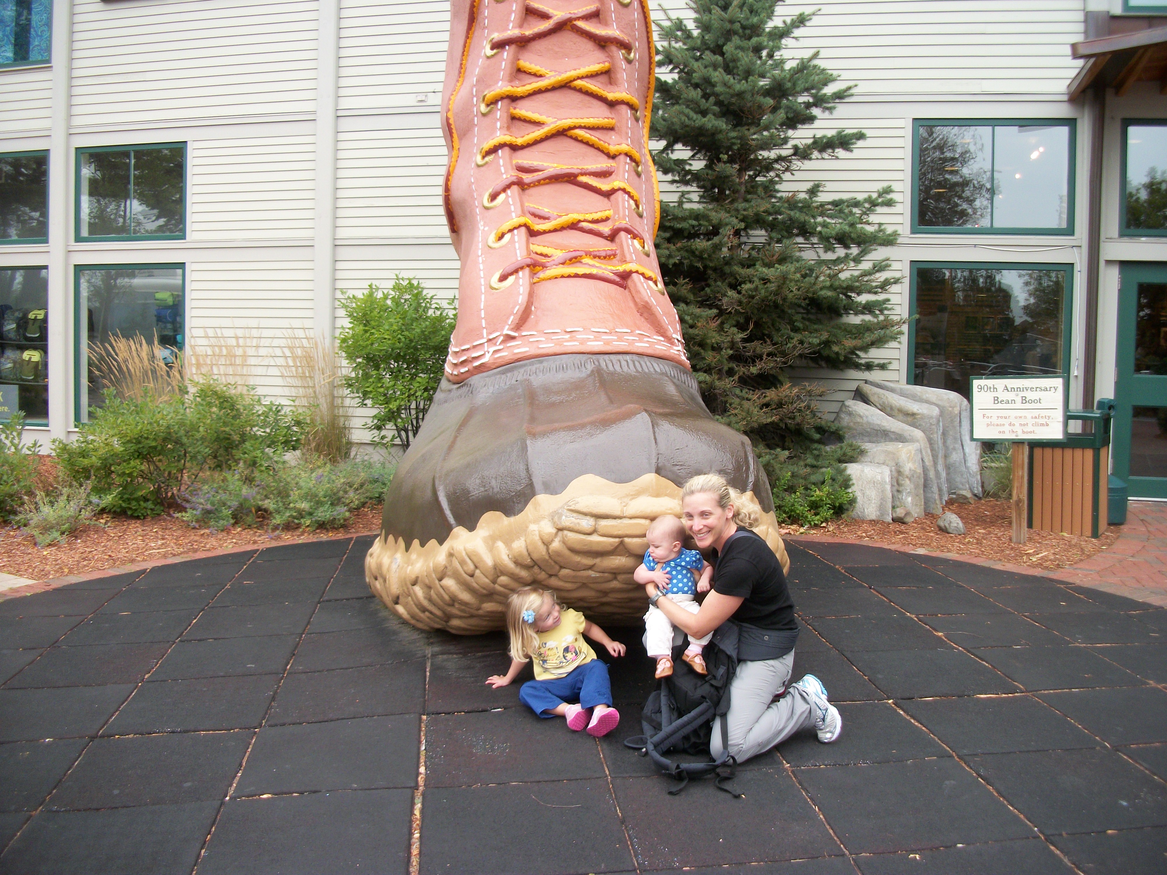 I picked them up at the Portland airport, and we stopped at LLBean to eat lunch, shop, and take pictures around the boot.  Ailey got a new pair of boots–which she loves and used every day.