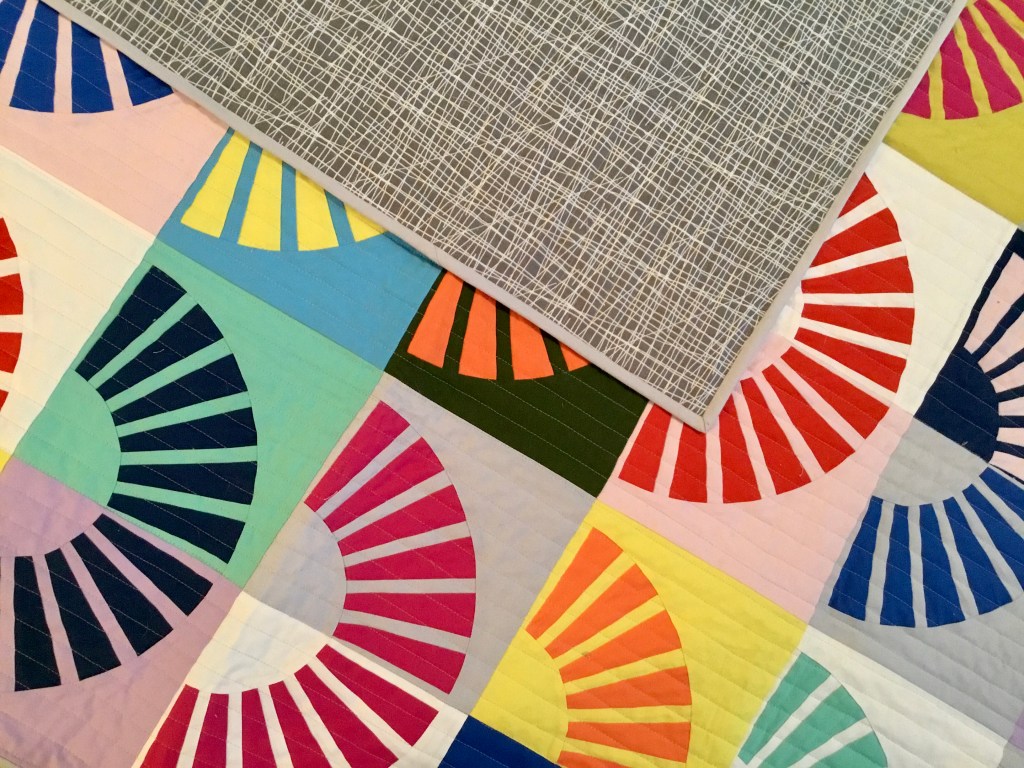 I’ve hand quilted for decades now, and in more recent years gravitated to thicker threads and bigger stitches. But in both methods, I’ve never been terribly good about getting my back stitches to be even like the front ones. Busy backing fabrics help hide that lack, but Tara pretty much works in all solids, and her quilt backs are as pretty as her fronts!